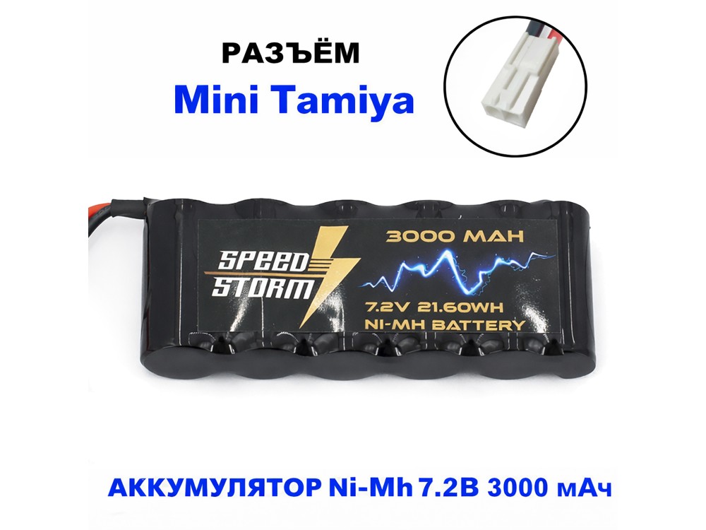 Аккумулятор Ni-Mh 7.2V 3000 mAh Mini Tamiya - SS-7.2V3000-TAMIYA - это никель-металлогидридный аккумулятор предназначен для радиоуправляемых моделей, использующих разъём Mini Tamiya. Обеспечивает стабильное питание и надёжную работу техники, подходит для замены штатных аккумуляторов в RC-машинах и другой электронике.