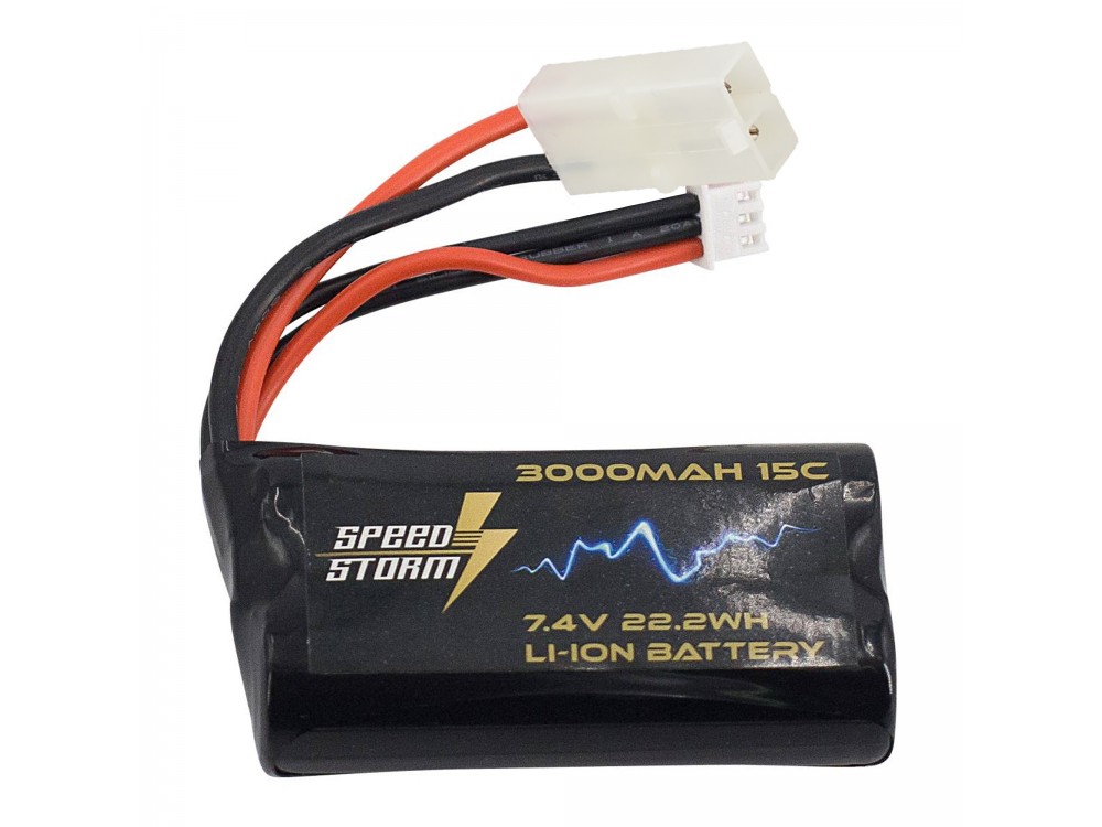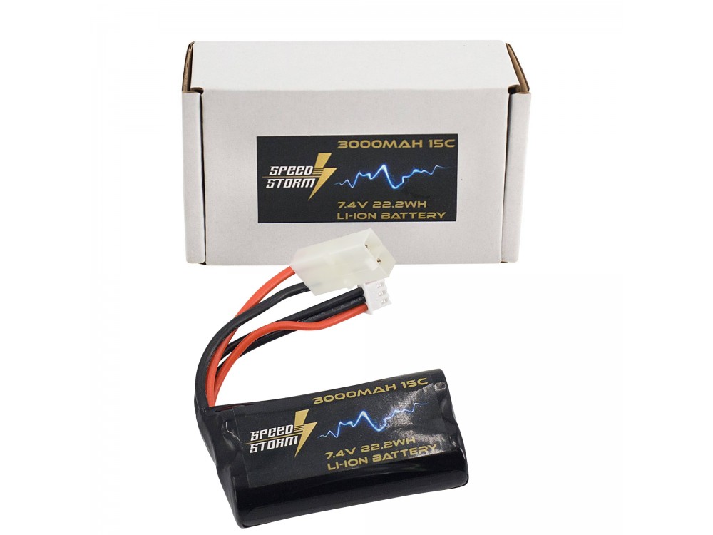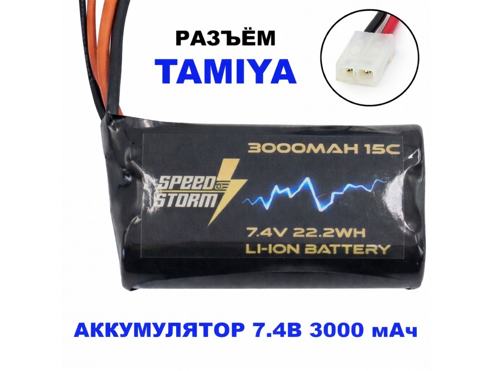 Аккумулятор Speed Storm Li-ion 18650 7.4V 3000 mAh разъем Tamiya - SS-2S3000-TAMIYA - это компактный и лёгкий Li-ion аккумулятор для радиоуправляемых моделей. Обеспечивает стабильное напряжение 7.4 В и хорошее время работы при меньшем весе по сравнению с Ni-MH. Оснащён стандартным разъёмом Tamiya, совместим с большинством RC-машин и техники.
