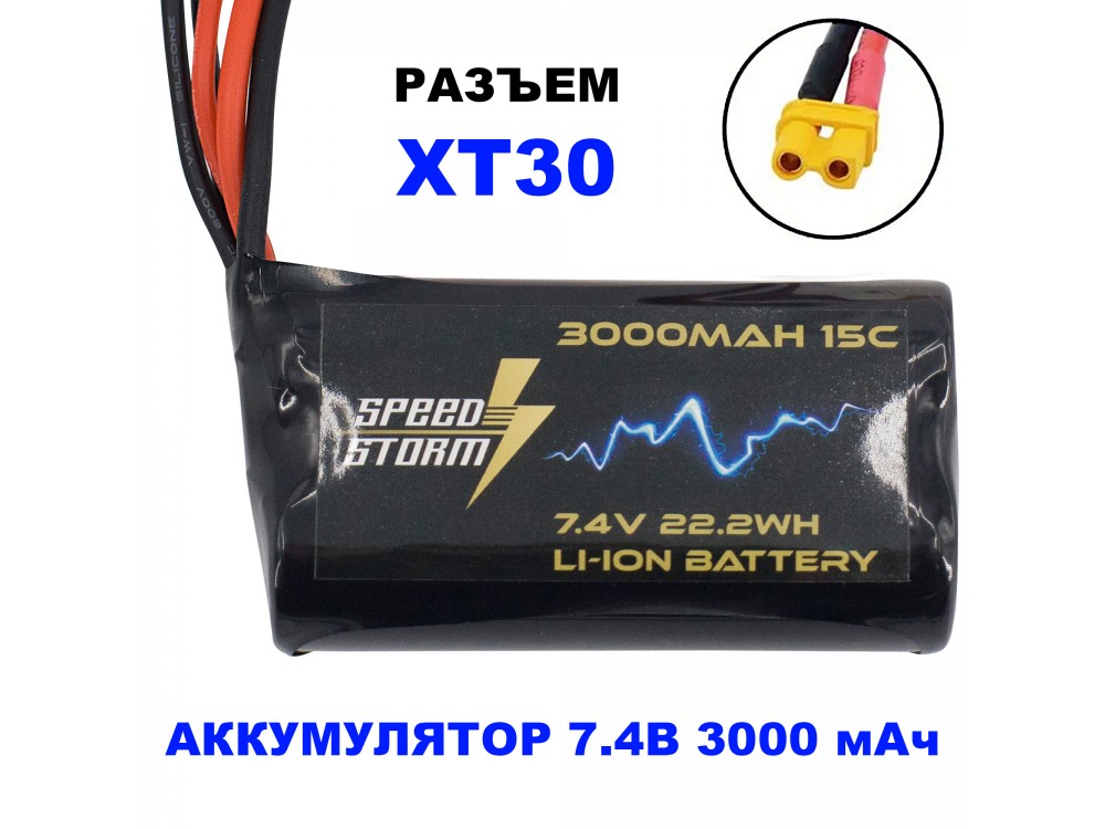 Аккумулятор Speed Storm Li-ion 18650 7.4V 3000 mAh разъем XT30 - SS-2S3000-XT30 для игрушек и моделей на радиоуправлении.