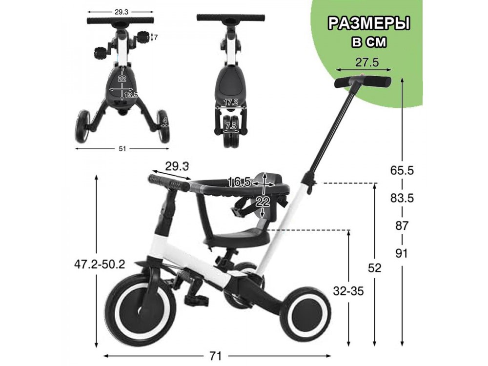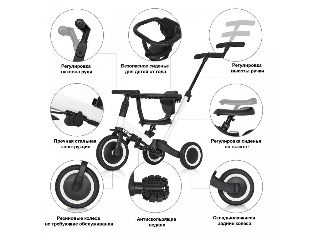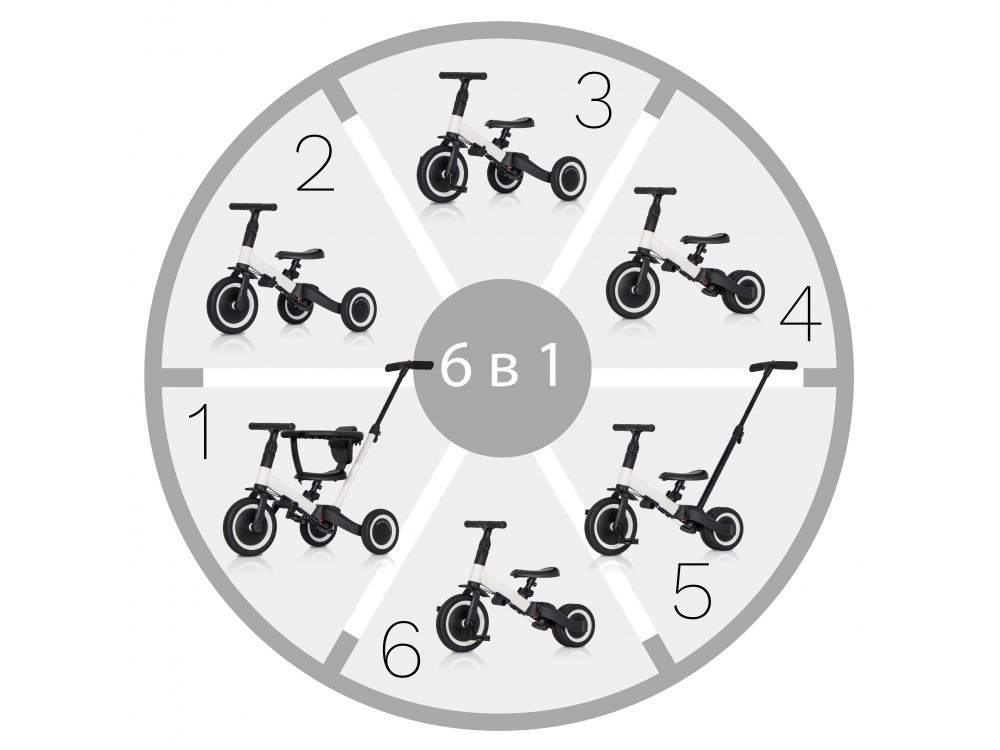 Детский беговел-велосипед 6в1 с родительской ручкой, белый - TR008-WHITE - это обновленная модель беговела TR007 с боковой поддержкой сиденья. TR008 - это удобный, универсальный и надежный беговел для детей от 1 до 5 лет, с возможностью становиться велосипедом!