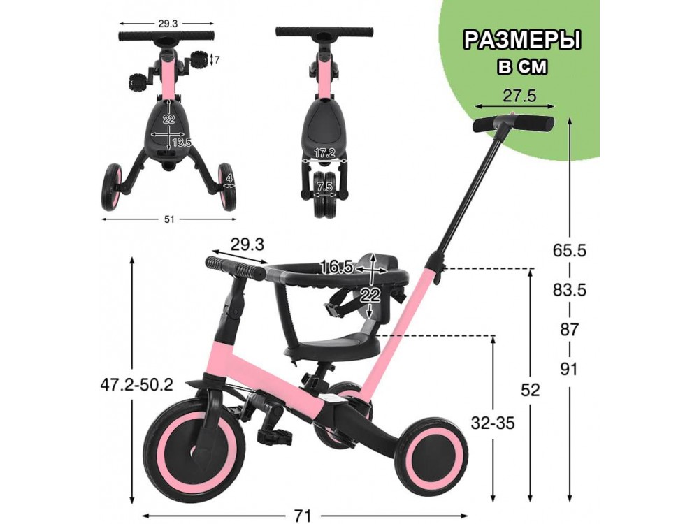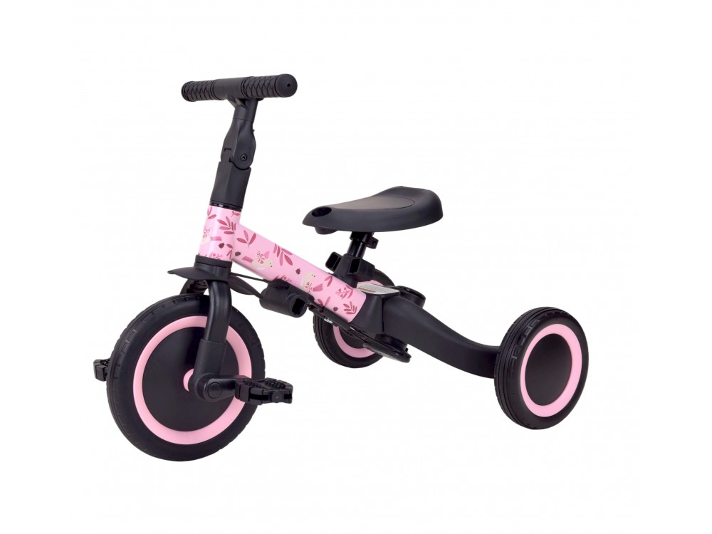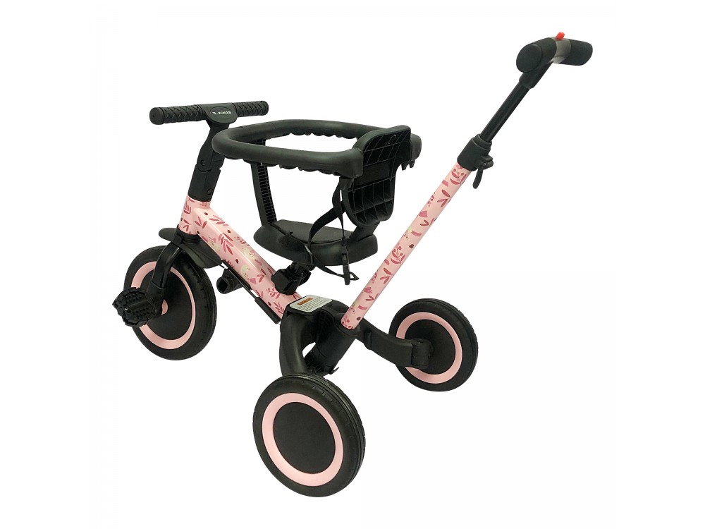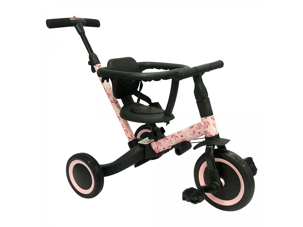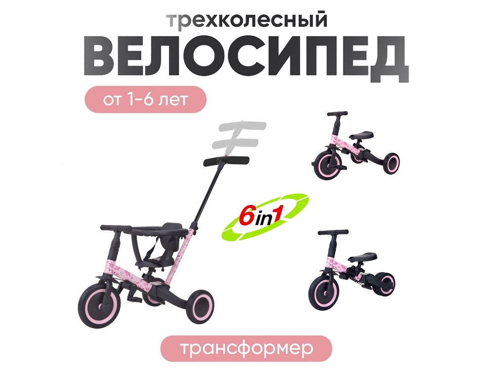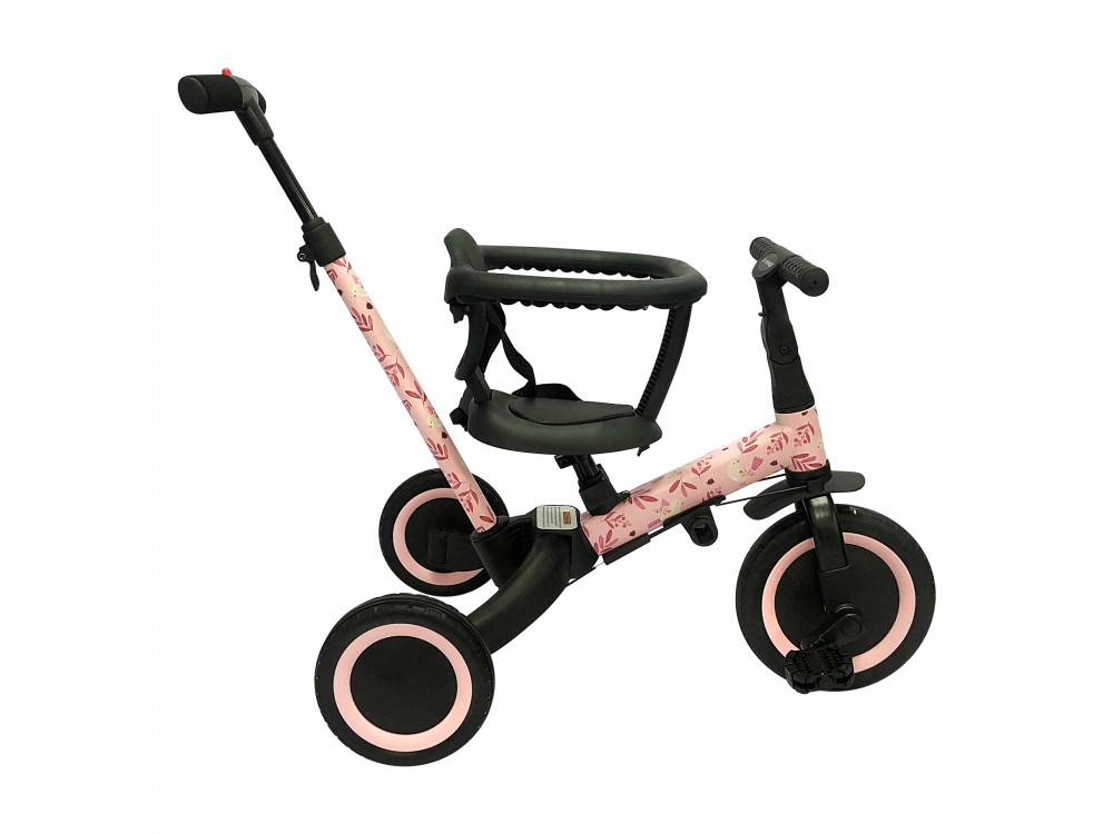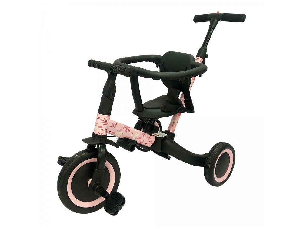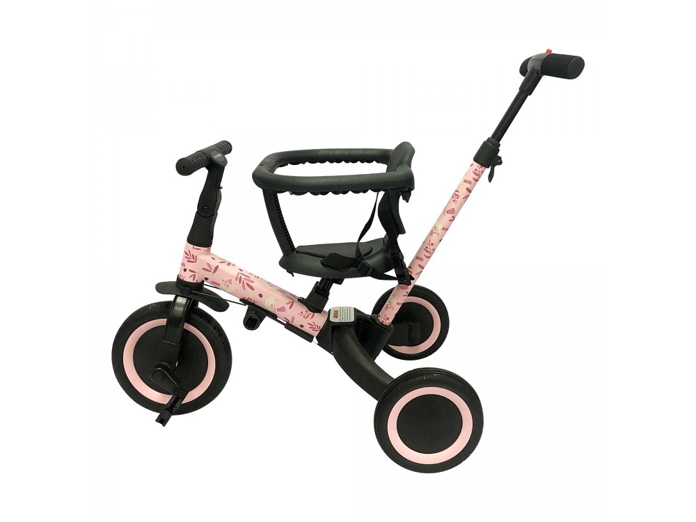 Детский беговел-велосипед 6в1 с родительской ручкой, розовый с рисунком - TR008-PINK-PAINT - это обновленная модель беговела TR007 с боковой поддержкой сиденья. TR008 - это удобный, универсальный и надежный беговел для детей от 1 до 5 лет, с возможностью становиться велосипедом!