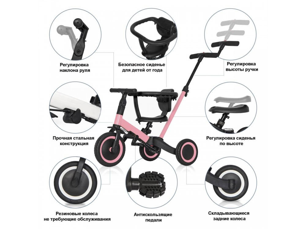 - Беговел-трансформер R-WINGS TR008 может быть, как двухколёсным или трёхколесным беговелом, так и трёхколесным велосипедом.
