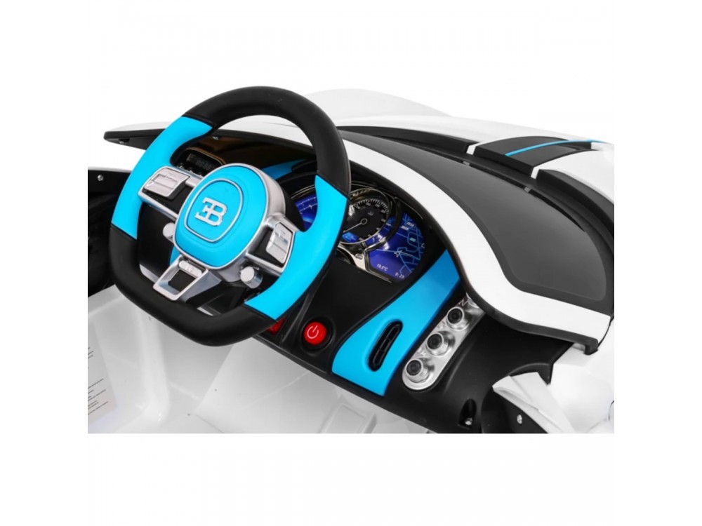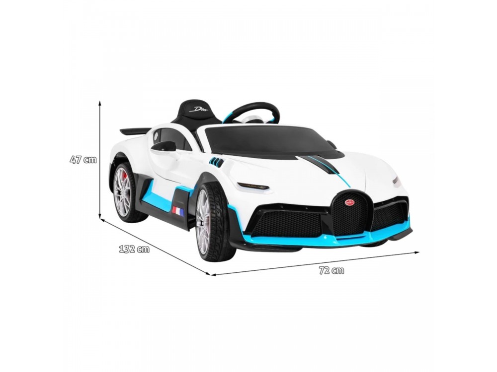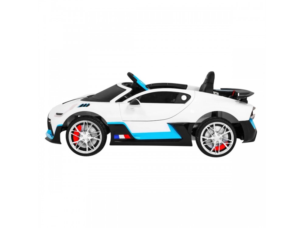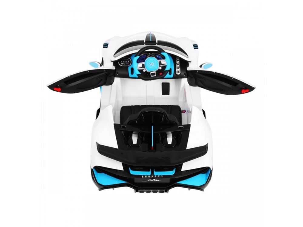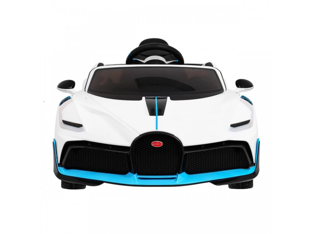 Детский электромобиль Bugatti Divo (белый лак, 12V) - HL338 - это детский одноместный электромобиль Bugatti Divo по лицензии известного автоконцерна выполнен по стилю легендарной спортивной версии Bugatti. Двухскоростной автомобиль с пультом радиоуправления, у него открываются боковые двери и багажник. Отличие этой модели от других – мягкие резиновые колеса, встроенная магнитола, LEВ подсветка фар и звук мотора, сиденье из перфорированной черной экокожи с логотипом и пульт управления 2.4G.