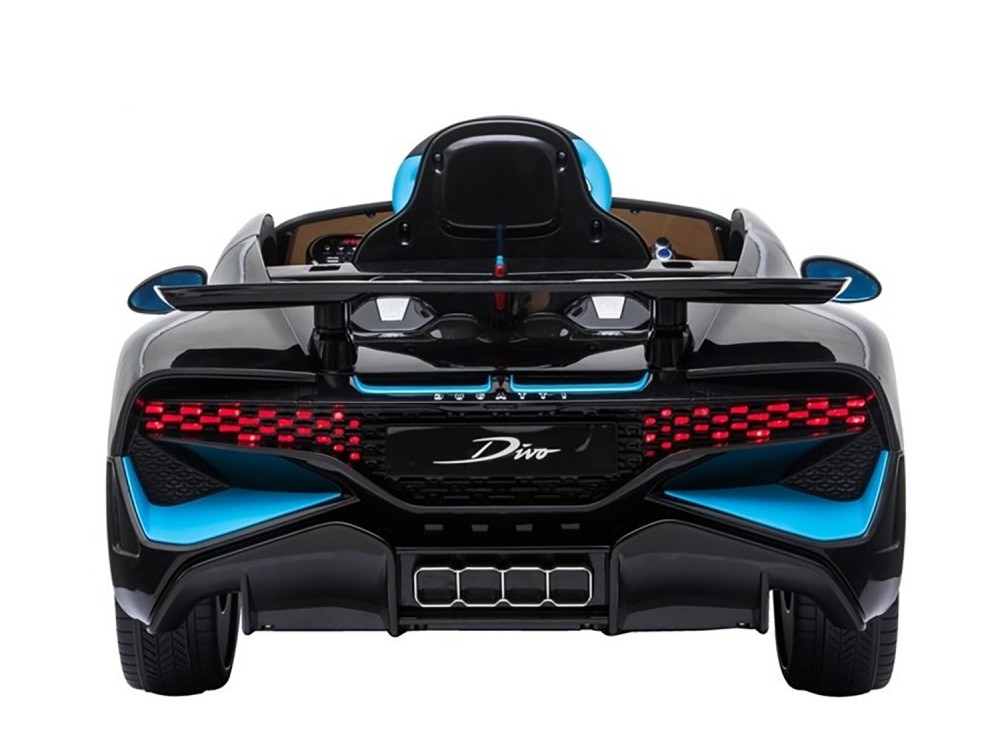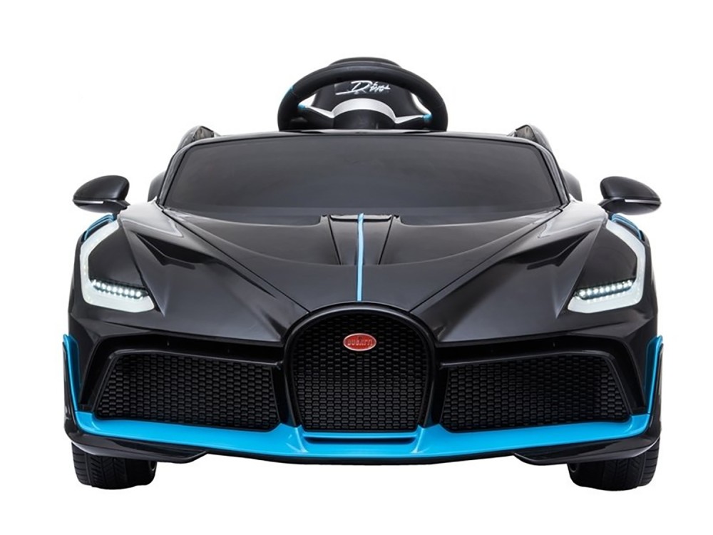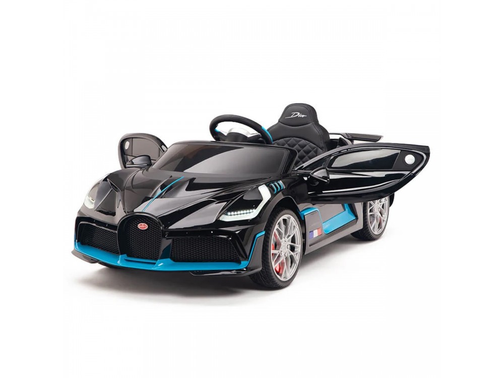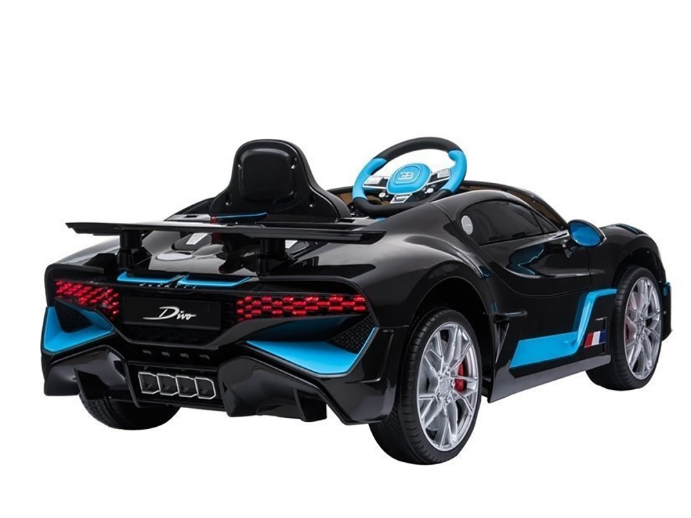 Детский электромобиль Bugatti Divo (черный, 12V) - HL338 - это детский одноместный электромобиль Bugatti Divo по лицензии известного автоконцерна выполнен по стилю легендарной спортивной версии Bugatti. Двухскоростной автомобиль с пультом радиоуправления, у него открываются боковые двери и багажник. Отличие этой модели от других – мягкие резиновые колеса, встроенная магнитола, LEВ подсветка фар и звук мотора, сиденье из перфорированной черной экокожи с логотипом и пульт управления 2.4G.