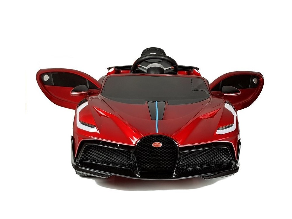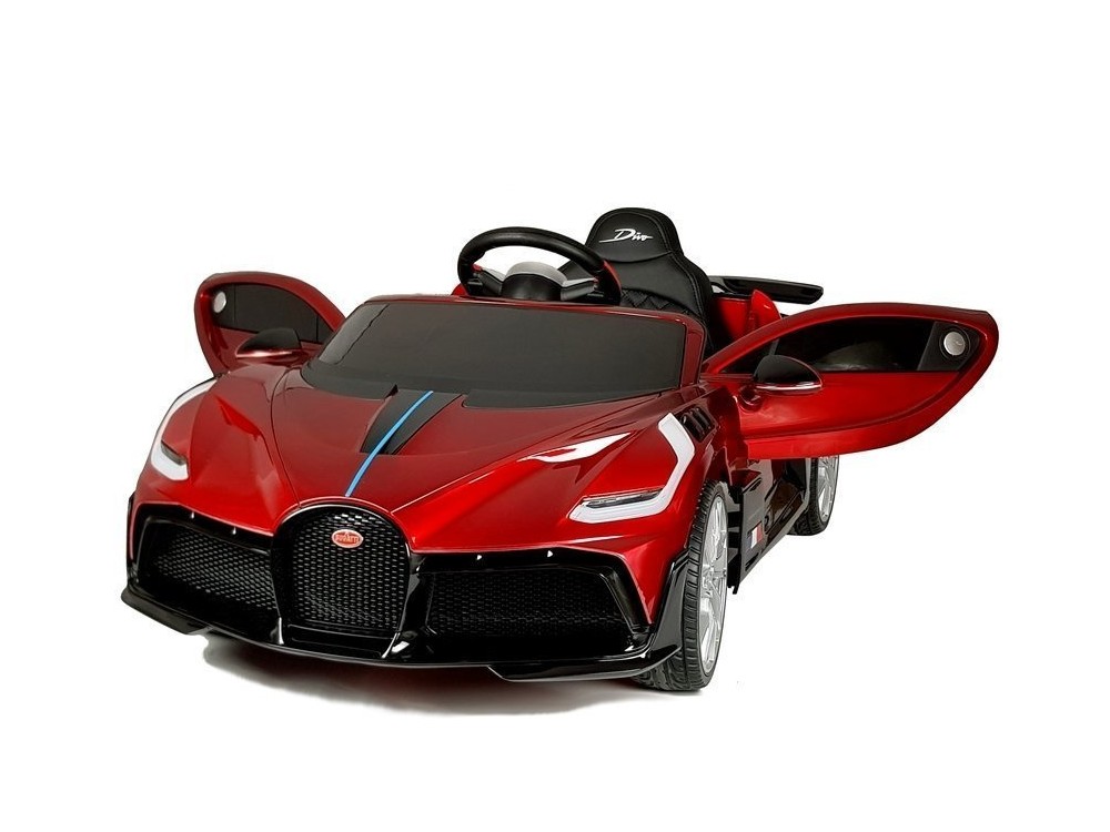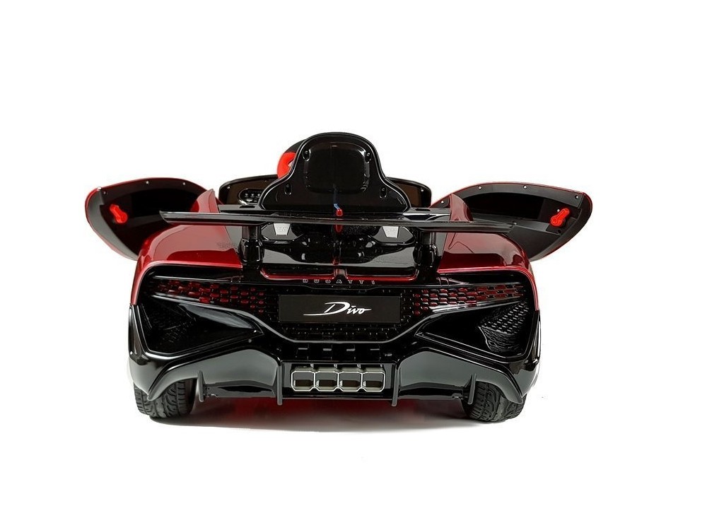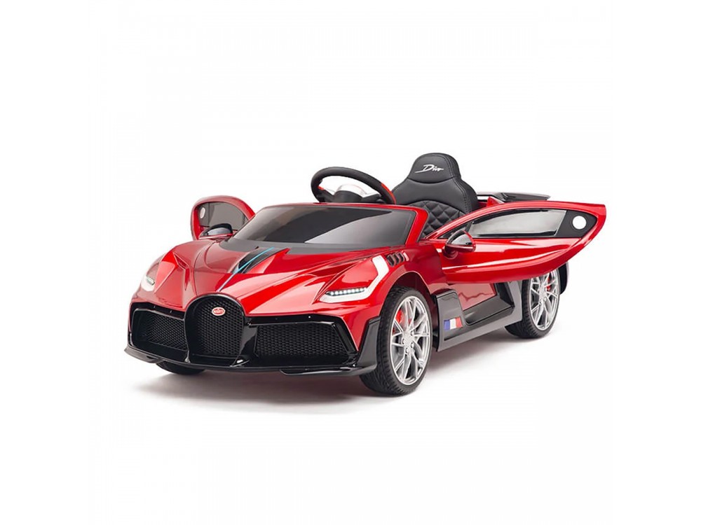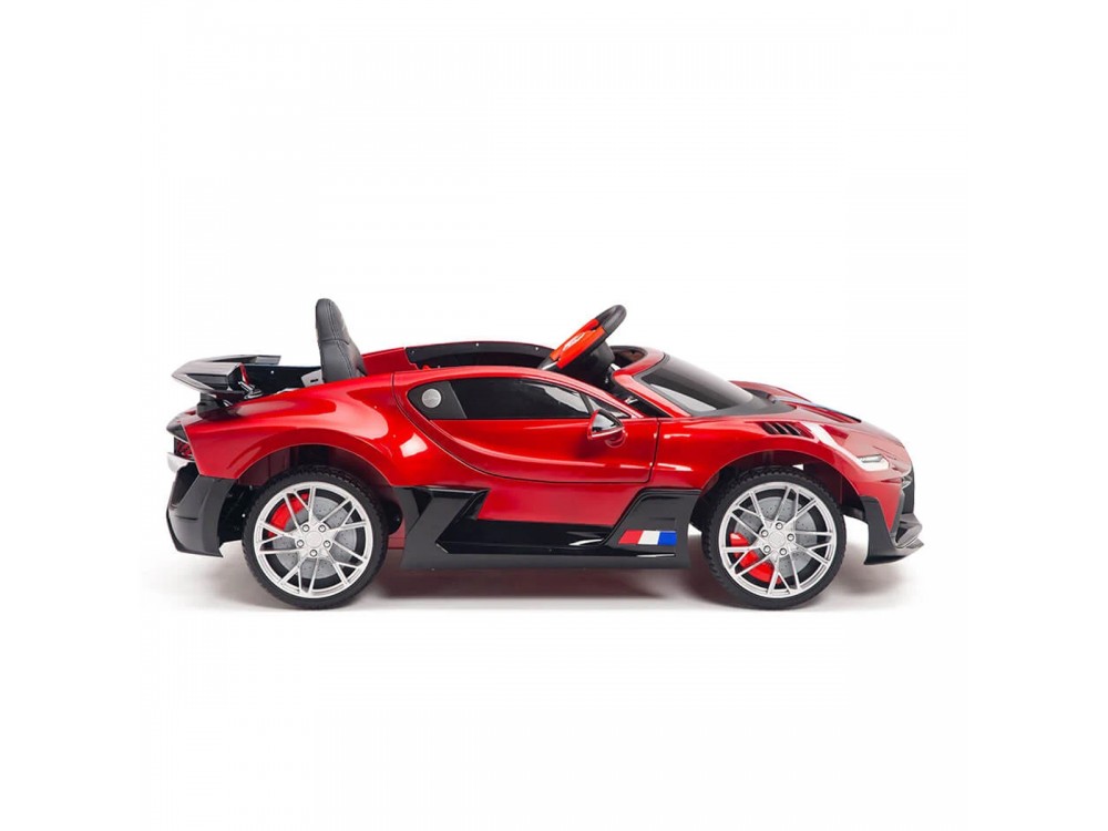 Детский электромобиль Bugatti Divo (красный лак, 12V) - HL338 - это детский одноместный электромобиль Bugatti Divo по лицензии известного автоконцерна выполнен по стилю легендарной спортивной версии Bugatti. Двухскоростной автомобиль с пультом радиоуправления, у него открываются боковые двери и багажник. Отличие этой модели от других – мягкие резиновые колеса, встроенная магнитола, LEВ подсветка фар и звук мотора, сиденье из перфорированной черной экокожи с логотипом и пульт управления 2.4G.
