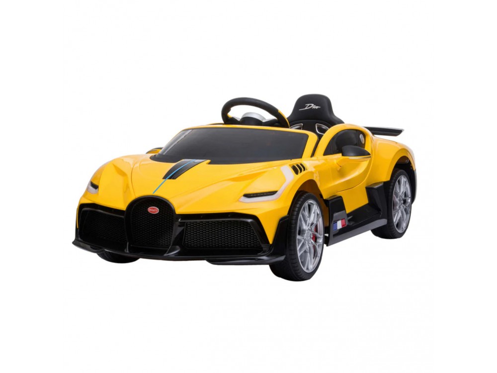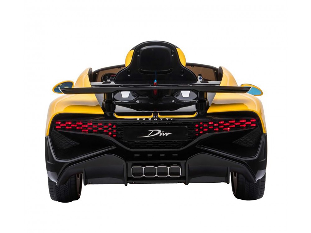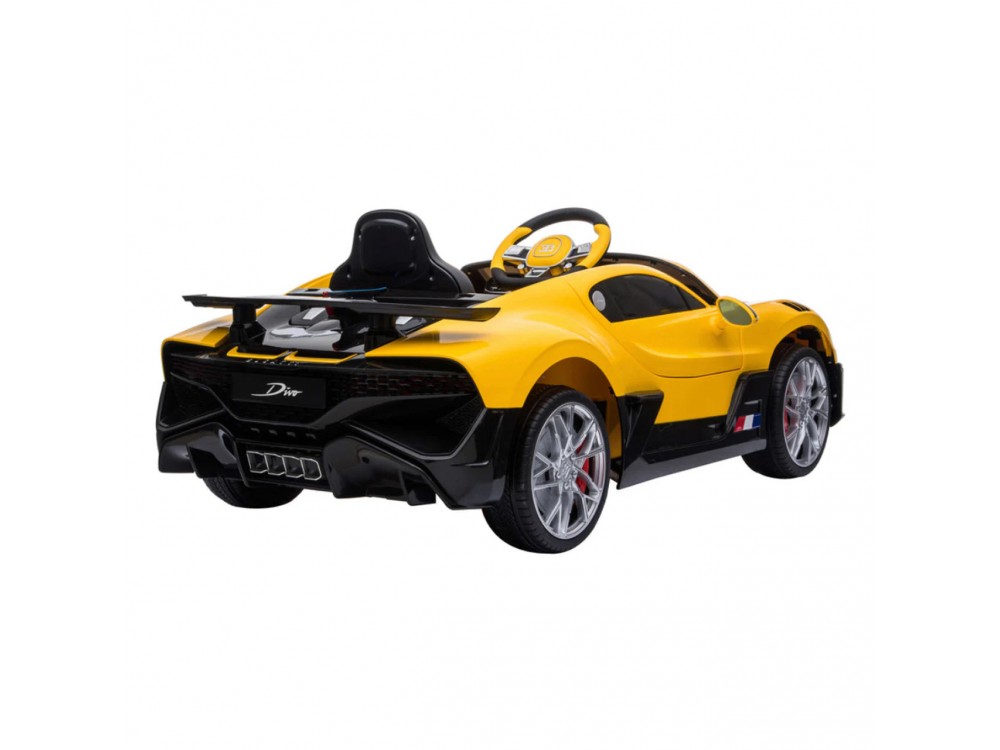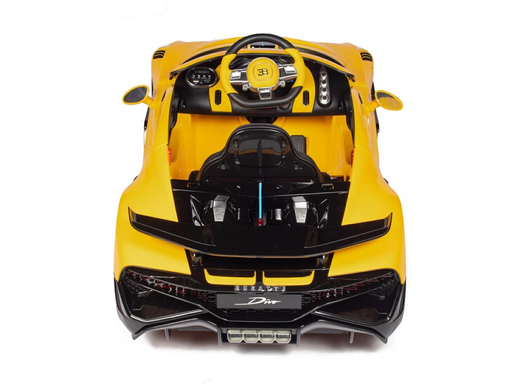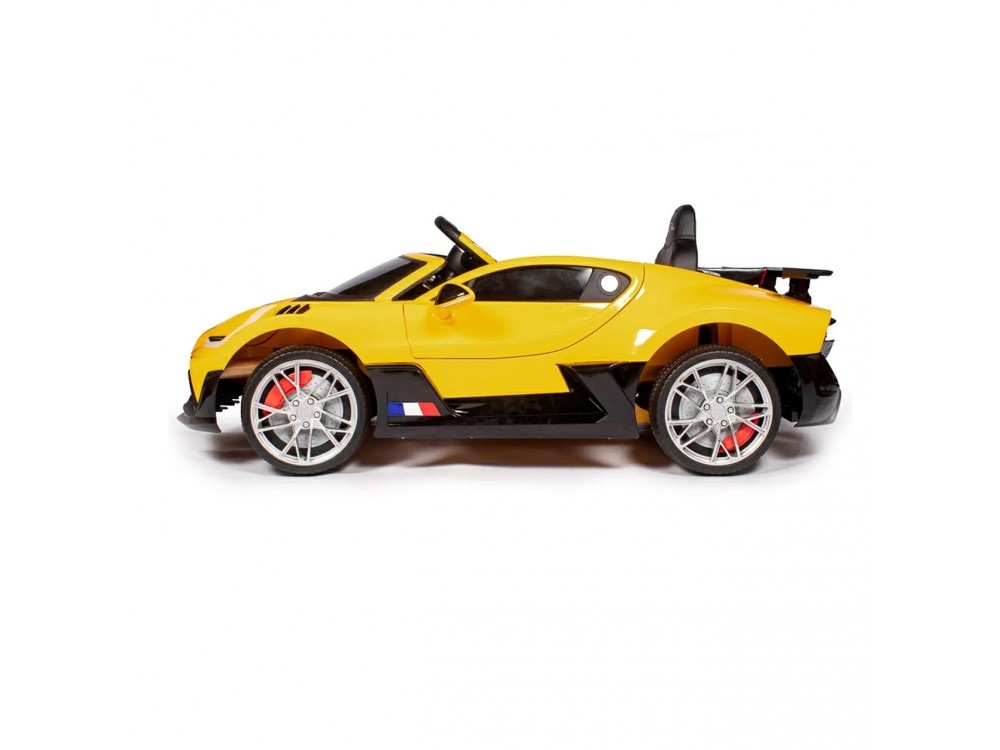 Детский электромобиль Bugatti Divo (желтый лак, 12V) - HL338 - это детский одноместный электромобиль Bugatti Divo по лицензии известного автоконцерна выполнен по стилю легендарной спортивной версии Bugatti. Двухскоростной автомобиль с пультом радиоуправления, у него открываются боковые двери и багажник. Отличие этой модели от других – мягкие резиновые колеса, встроенная магнитола, LEВ подсветка фар и звук мотора, сиденье из перфорированной черной экокожи с логотипом и пульт управления 2.4G.