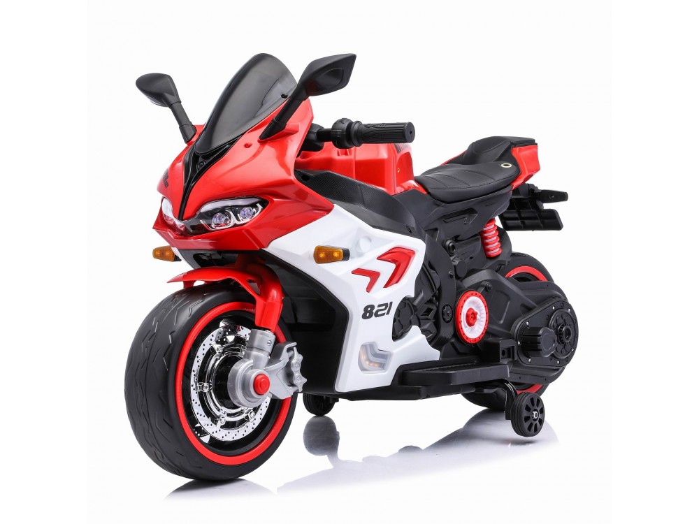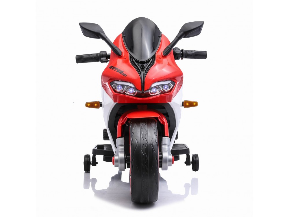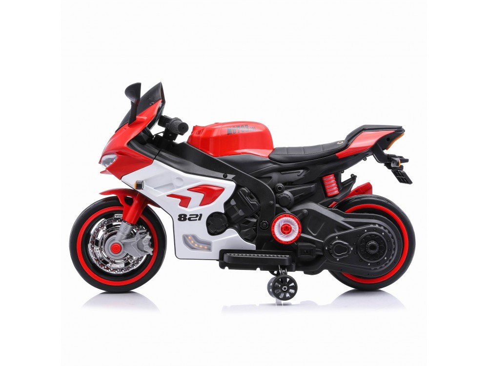 Детский электромотоцикл Ducati (12V, EVA, ручка газа, спидометр) - FT-821-RED-WHITE - это яркий спортивный электробайк с диодной подсветкой колес, фар, задних стопов и габаритных огней, несомненно, привлечет внимание, как детей, так и взрослых. Запоминающийся внешний вид дополнен отличным функционалом: два мотора по 45 Ватт, резиновые колеса для отличного сцепления с любым дорожным покрытием, каучуковые дополнительные боковые колесики для хорошей устойчивости, эргономичное сиденье из кожзама, амортизатор для комфортного катания, боковые зеркала и задние стопы из мягкого пластика, магнитола для прослушивания любимой музыки.