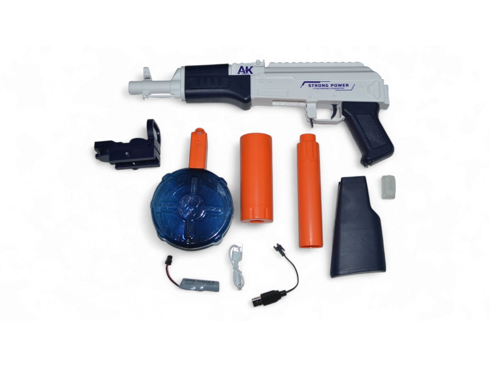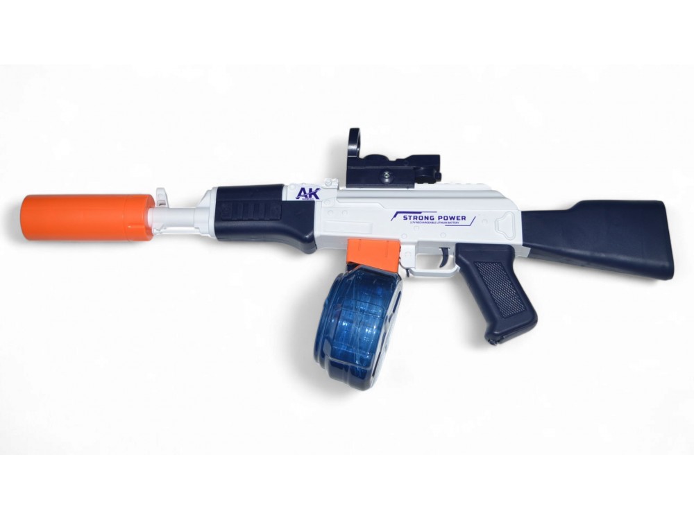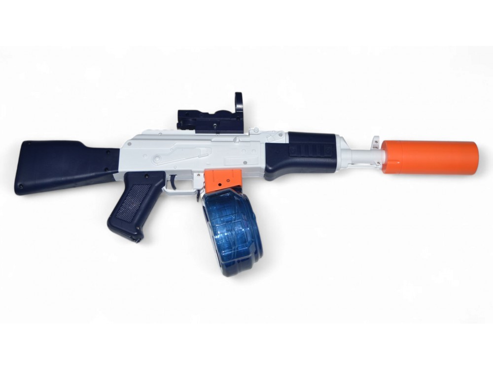 Этот водный автомат – захватывающая игрушка, которая подарит часы веселья и активных игр на свежем воздухе. Выполненная в реалистичном дизайне легендарного Советского автомата, она обязательно привлечет внимание детей и подростков. Яркий синий цвет с барабанным магазином добавляет ей стильный и современный вид.
