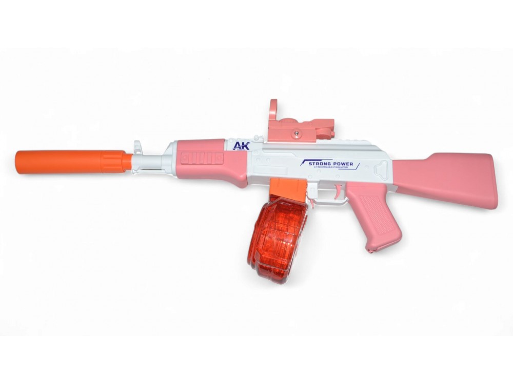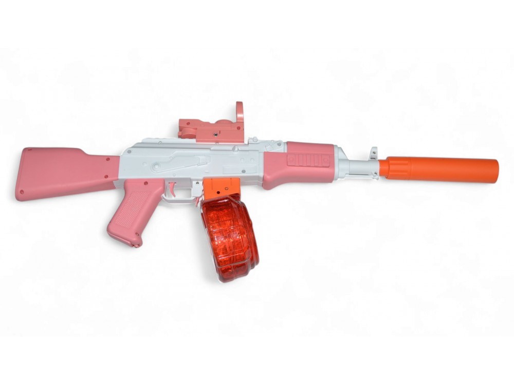 Этот водный автомат – захватывающая игрушка, которая подарит часы веселья и активных игр на свежем воздухе. Выполненная в реалистичном дизайне легендарного Советского автомата, она обязательно привлечет внимание детей и подростков. Яркий розовый цвет с барабанным магазином добавляет ей стильный и современный вид.