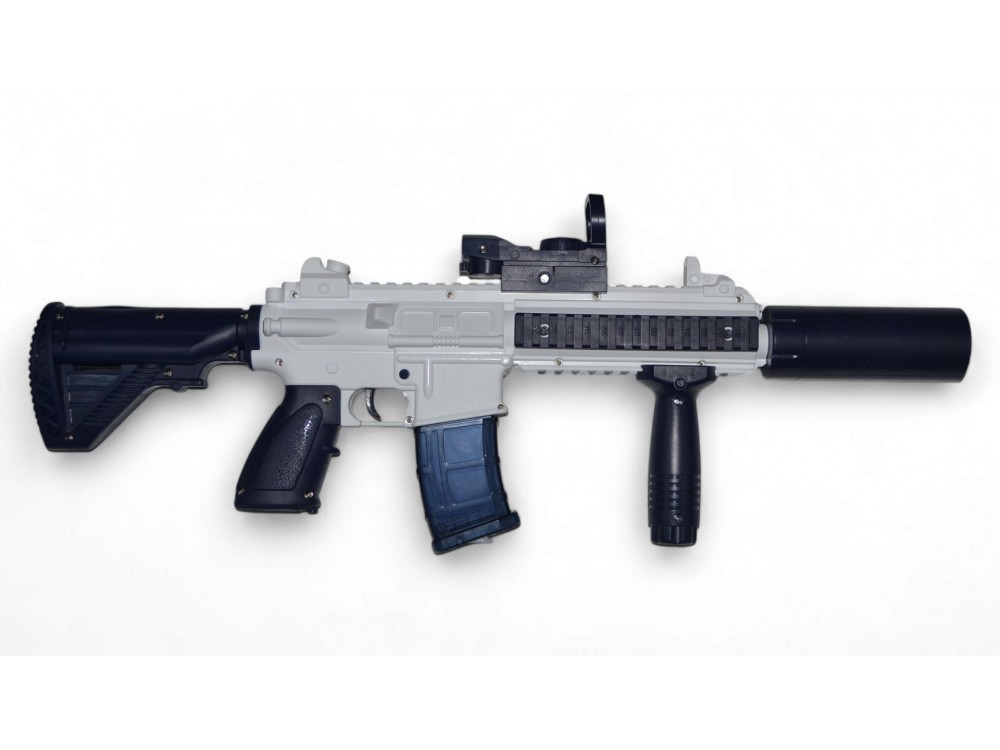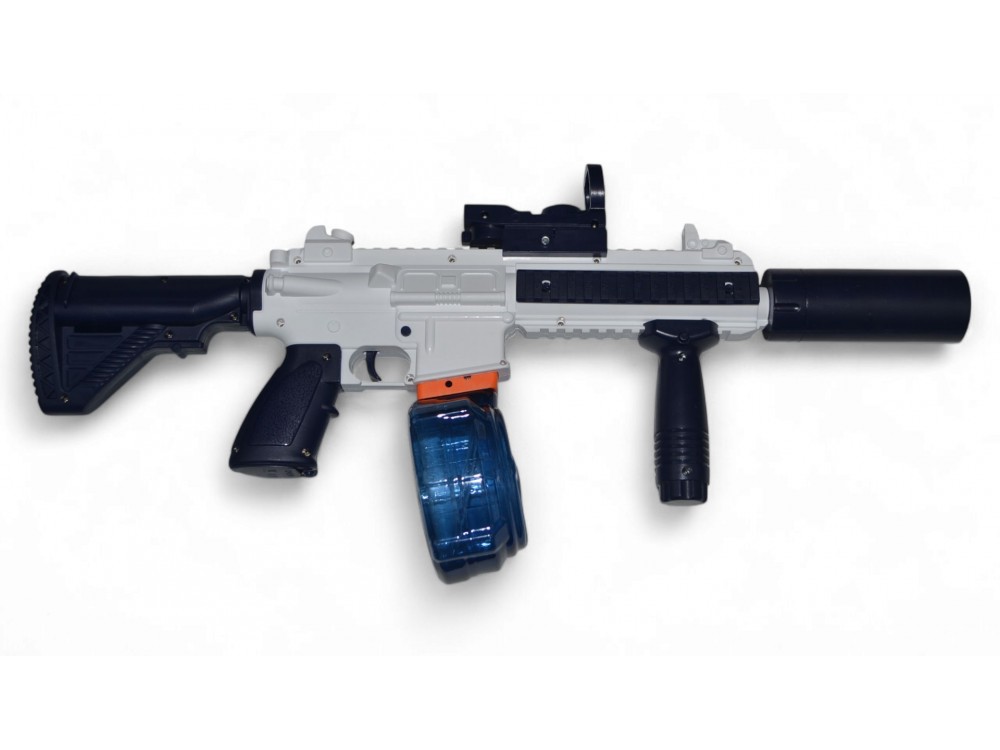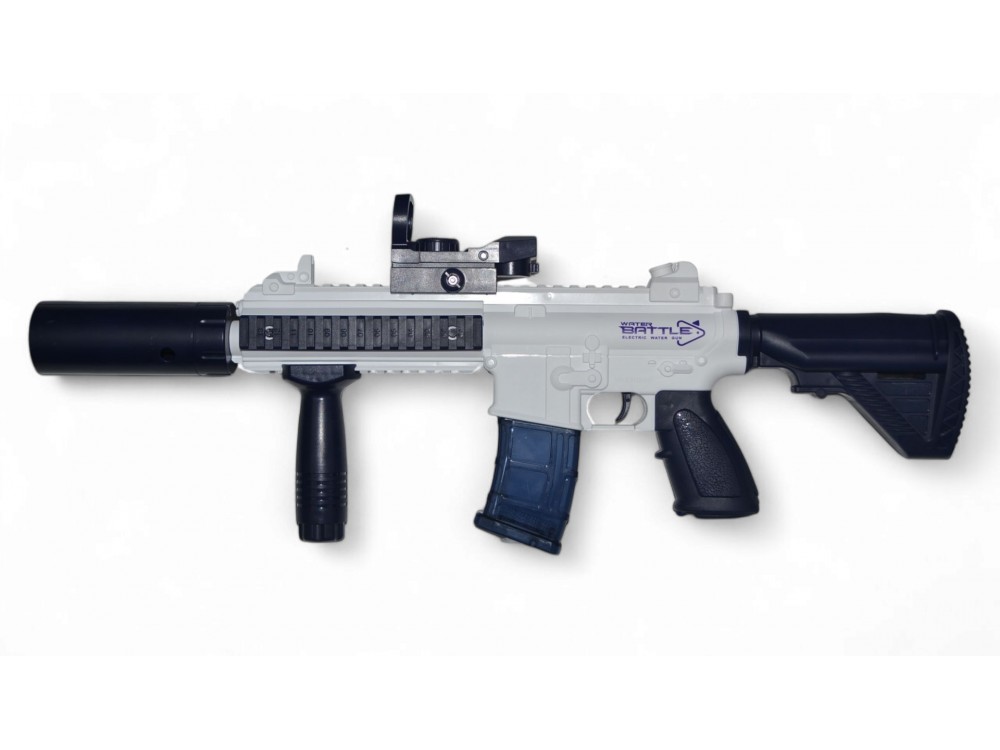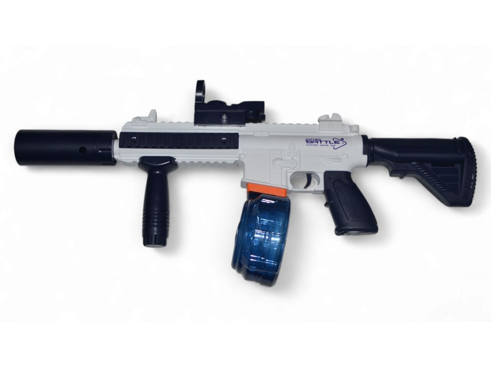 Автомат изготовлен из прочного и безопасного пластика, а также включает в себя электронные компоненты для автоматической подачи воды. Благодаря этому, для стрельбы не требуется ручная подкачка – достаточно просто нажать на курок.