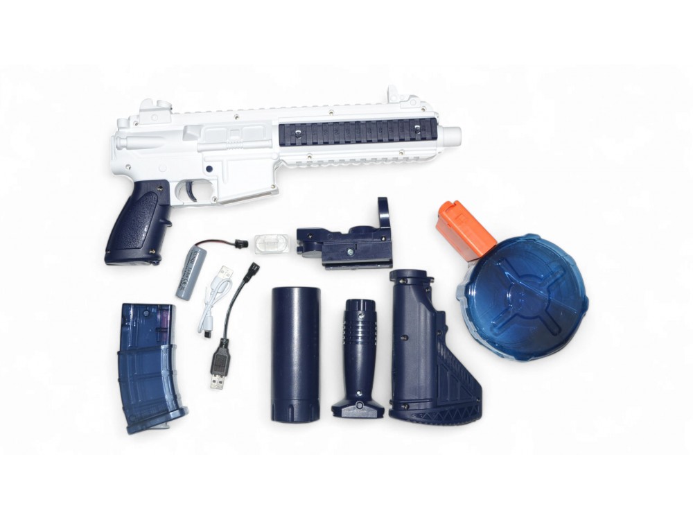 Этот водный автомат – захватывающая игрушка, которая подарит часы веселья и активных игр на свежем воздухе. Выполненная в реалистичном дизайне, он обязательно привлечет внимание детей и подростков. Яркий синий цвет с барабанным магазином добавляет стильный и современный вид.