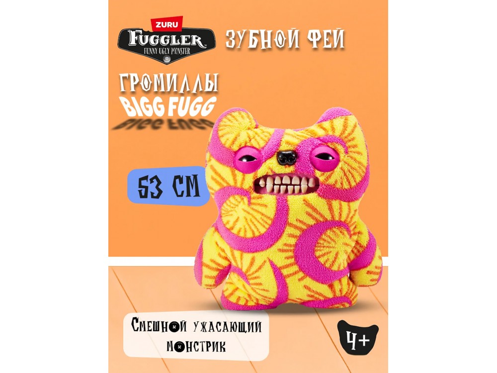 Мягкая игрушка FUGGLER Старый Зуб - 15733E - это большая 53-сантиметровая мягкая игрушка из серии Громилы от компании ZURU с яркой внешностью и ещё более ярким характером. Громилы - это гигантские чудаки не умеют прятаться - вы точно заметите их приближение. Они не слишком сообразительные, но очень забавные, и ждут, когда кто-то осмелится их усыновить. В коллекции - 6 уникальных плюшевых персонажей, каждый со своим неповторимым видом. Эти игрушки созданы для тех, кто любит неординарные образы, мягкость и немного хаоса.