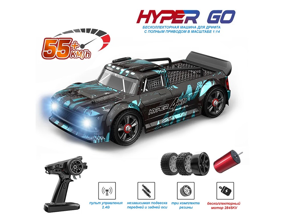 Радиоуправляемая машина для дрифта MJX Hyper Go 4WD Brushless 1:14 - MJX-14301 - это новая модель от популярного производителя MJX R/C. Автомобиль выполнен в масштабе 1/14 и отличается от конкурентов наличием 3-х комплектов колес (для дрифта и шоссейных гонок), интеллектуальной аккумуляторной батареи, бесколлекторным двигателем с системой охлаждения, дополнительным чехлом для защиты от грязи и песка, а также оптимальным соотношением цены и качества деталей.