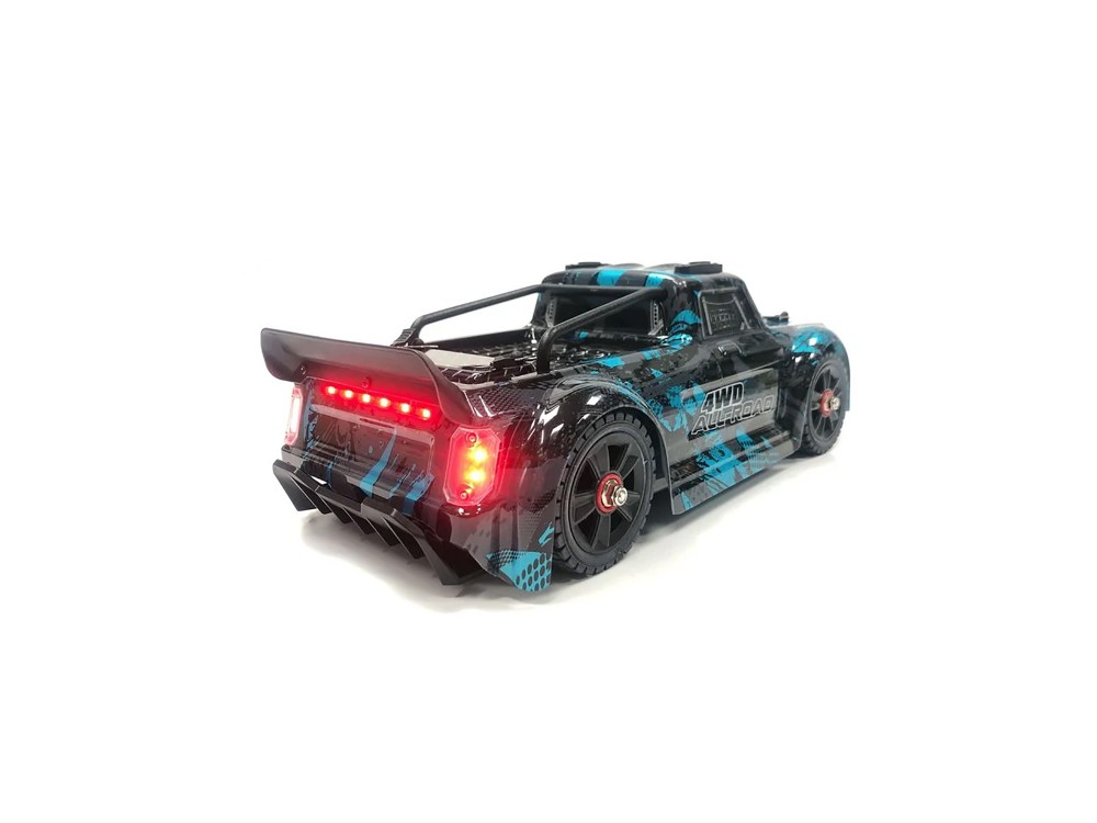 Полный привод повышает проходимость и управляемость модели. На Hyper Go установлен бесколлекторный двигатель 2845KV, влагозащищенный приемник и регулятор ESC 45А. Мощный аккумулятор Li-Ion 7.4V 2000 mah, идущий в комплекте, придает модели большую мощность! Пульт управления на частоте 2.4Ghz позволит управлять моделью на расстоянии до 120 метров. LED подсветка фар и кузова сделает игру в темное время суток незабываемой.
