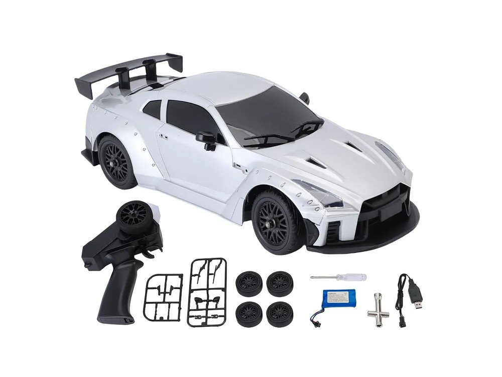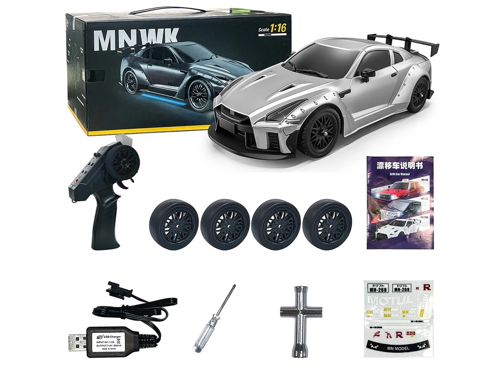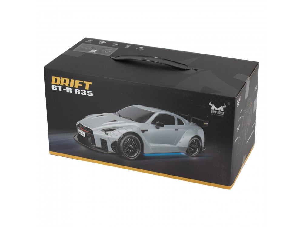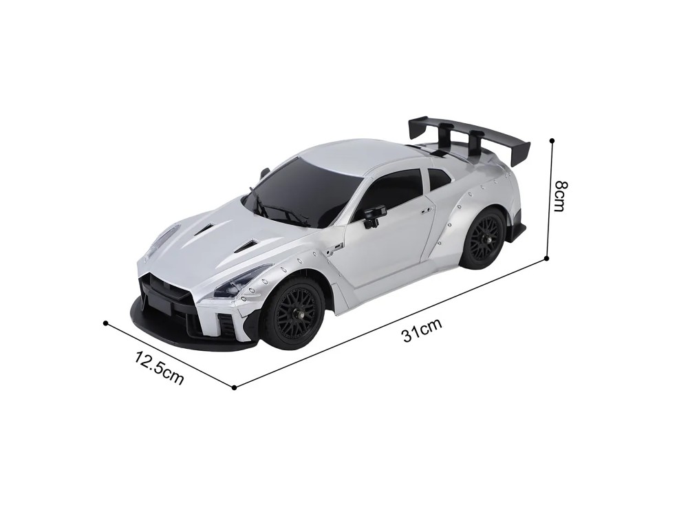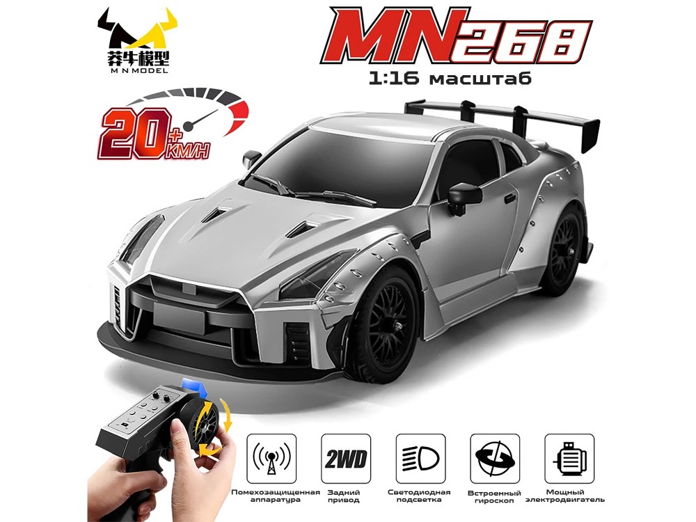 Радиоуправляемая машина для дрифта Nissan GTR (31 см, 20 км/ч, акб, 1:16) - MN-268-GREY - это спортивный автомобиль для дрифта с классическим задним приводом в масштабе 1:16, который поставляется в полностью готовом к использованию виде. Модель работает от электрического двигателя и развивает скорость около 20 км/ч. Вспомогательный гироскоп для обеспечения высокой стабильности при дрифте. В комплекте есть все, что нужно для первого заезда.