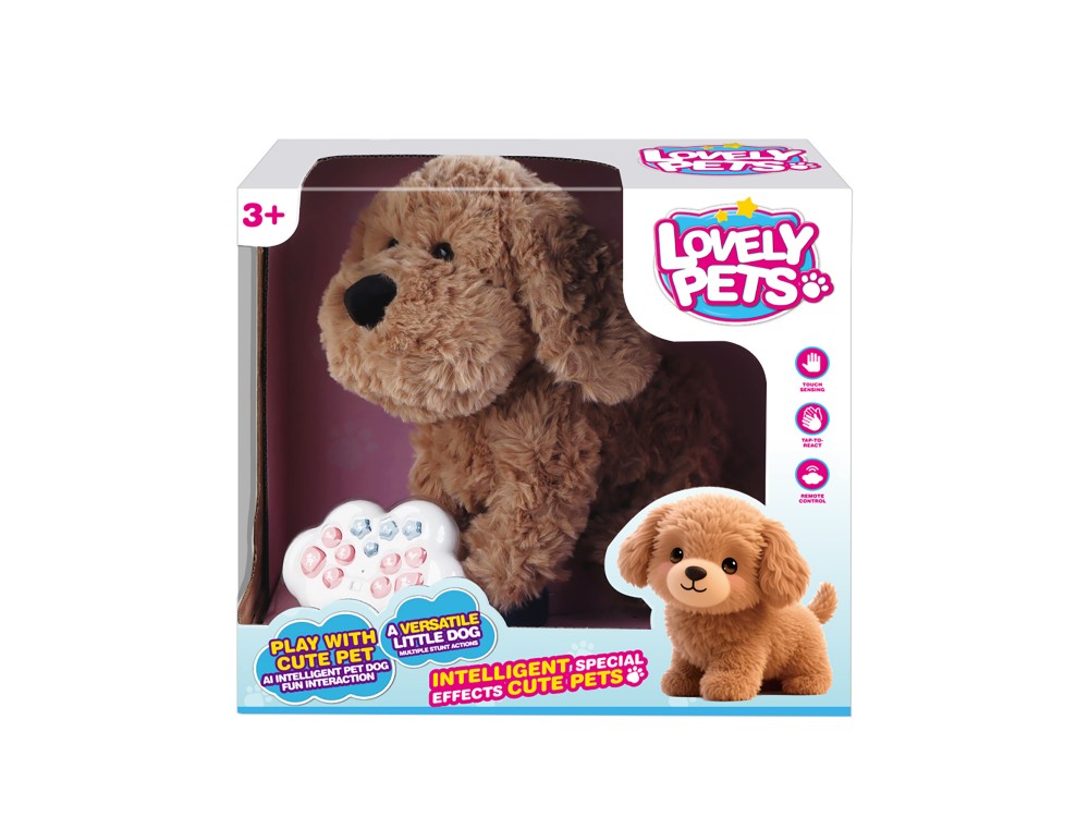 - Интерактивная собачка мягкая и приятная на ощупь, умеет ходить, делать акробатические трюки, реагирует на прикосновения и хлопки, может двигаться и воспроизводит звуки настоящей собаки.