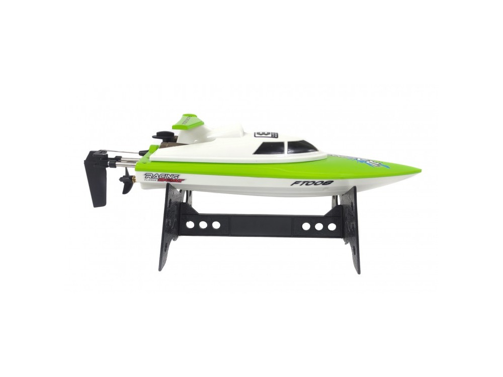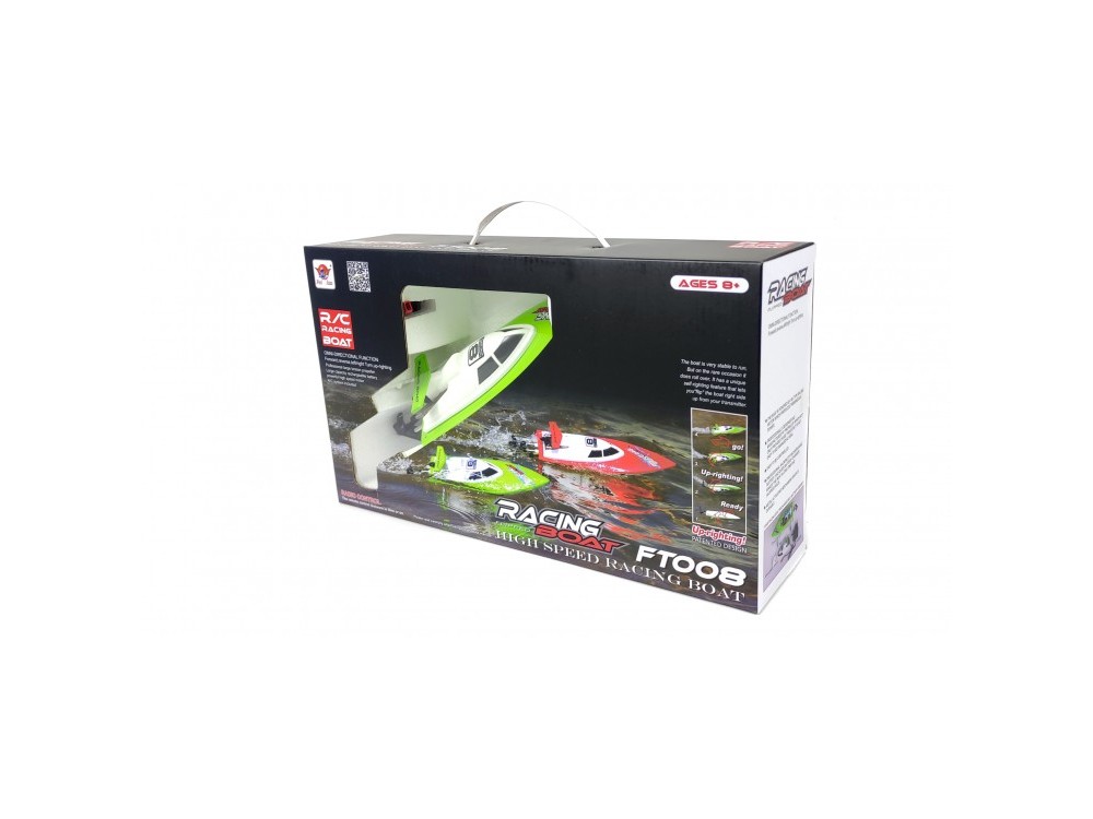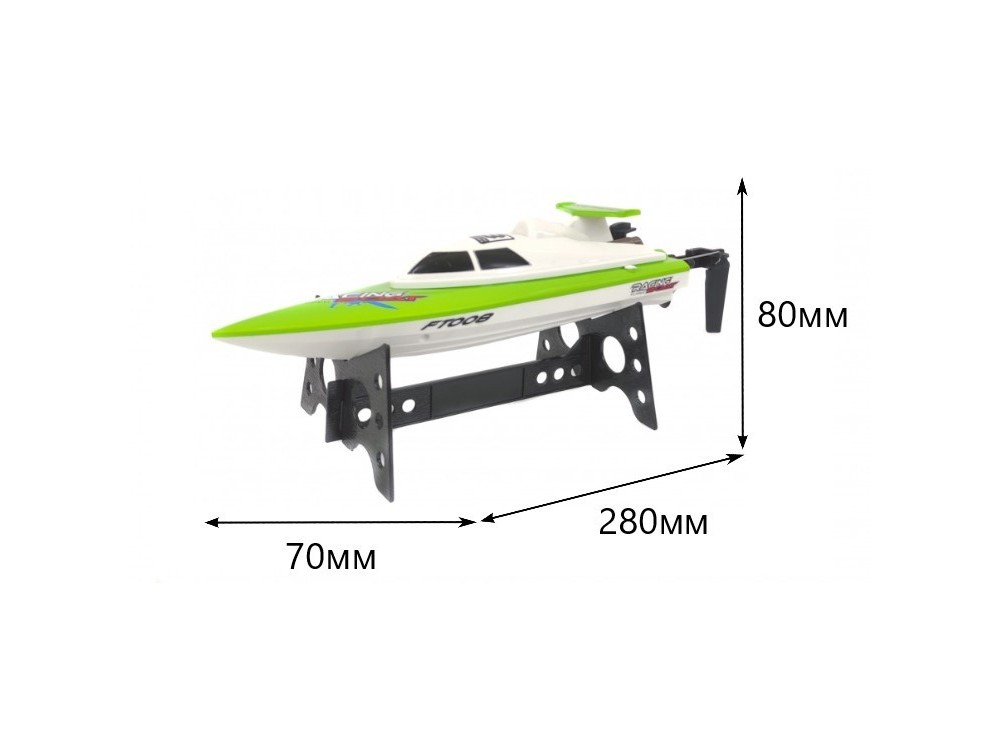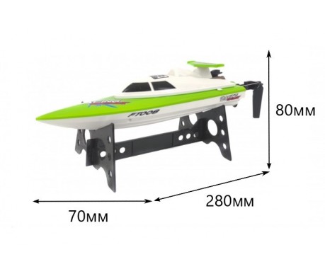 - Комплектация Катер FT008 в сборе, пульт управления, аккумулятор, батарейка для пульта управления, зарядное устройство, подставка для катера, бампер, запасной винт, инструкция.