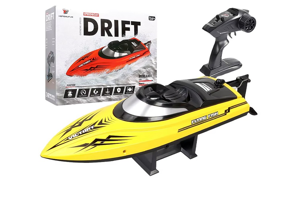 Радиоуправляемый катер DRIFT (30 см, 25 км/ч) - HJ811-YELLOW - этот великолепный катер HJ811 несмотря на свой небольшой размер, может достичь максимальной скорости 25 км/ч, благодаря мощному коллекторному электродвигателю! Катер поставляется в полностью собранном виде и со всем необходимым для первого запуска.
