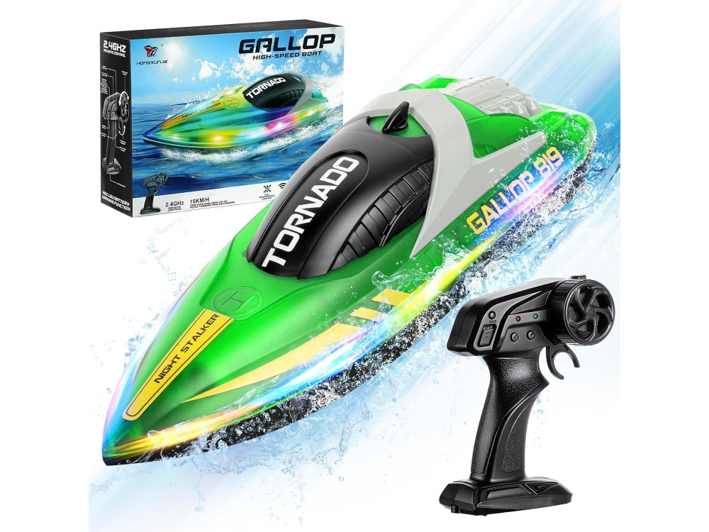 Радиоуправляемый катер Gallop (25 см, 15 км/ч) - HJ819-GREEN - это высокоскоростная катер HJ819 от компании HJ с яркой светодиодной подсветкой и возможностью игры до 2 часов. Катеp предназначен для использования на озерах, прудах и других открытых водоемах.