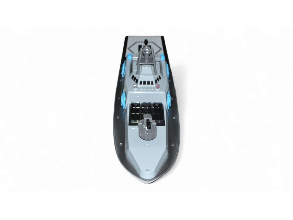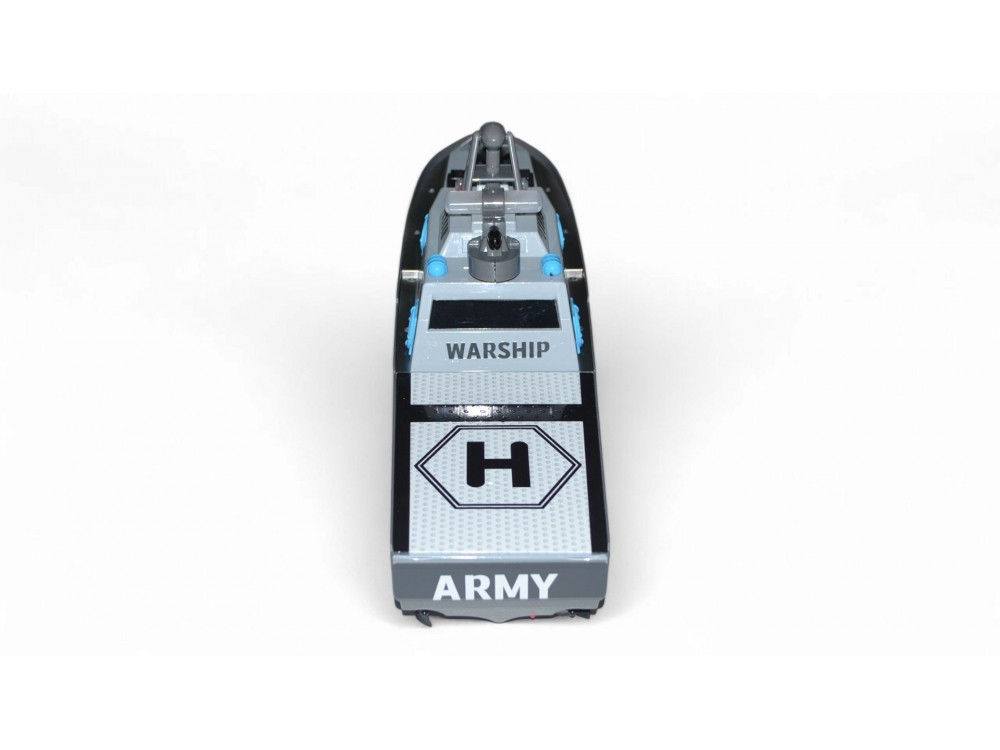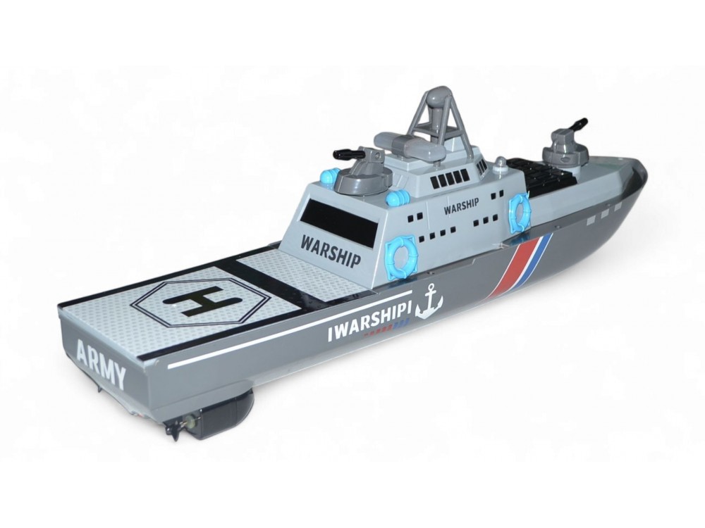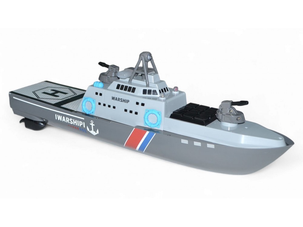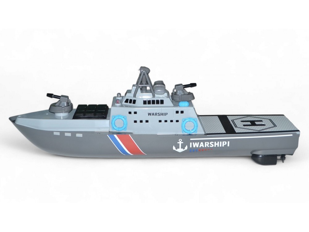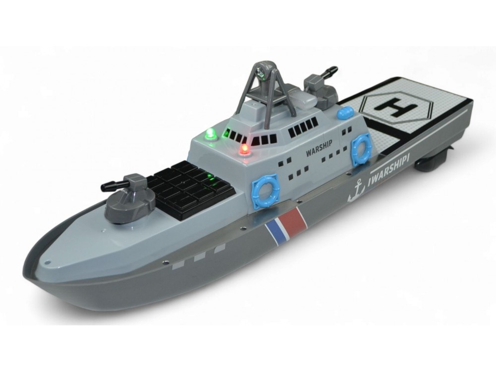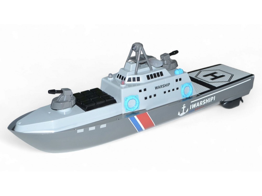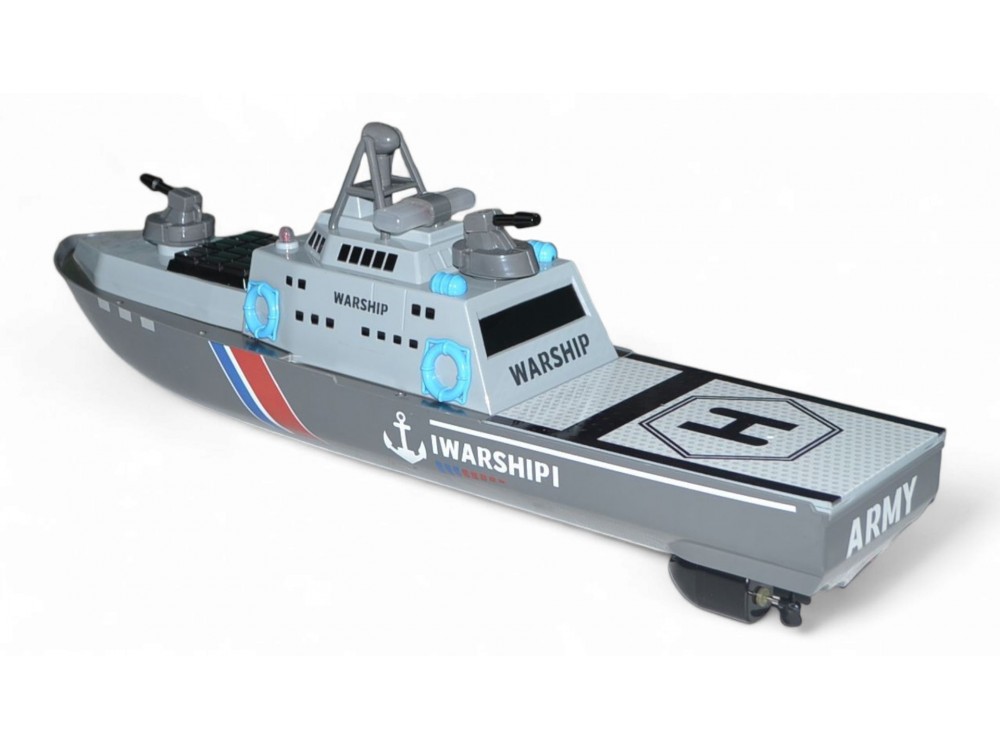 Радиоуправляемый корабль с посадочной площадкой - это большая имитация военной лодки длиной 57 см оснащена яркими светодиодными лампочками, позволяющим бороздить водные просторы даже в темное время суток.