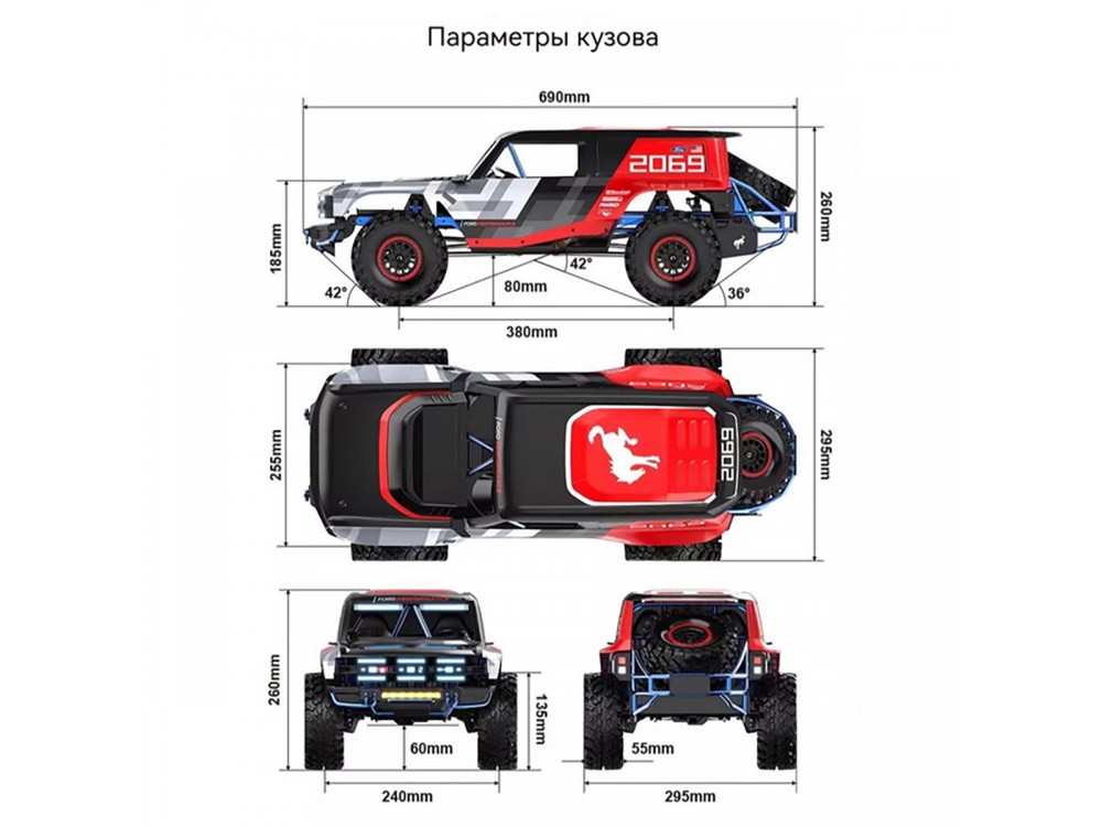 Радиоуправляемый внедорожник MJX Hyper Go Ford Bronco Baja 1000 в масштабе 1:8 - мощная модель для скоростных заездов и бездорожья. Официально лицензированный дизайн Ford Bronco выполнен в стиле легендарной гонки Baja 1000 и отличается высокой детализацией.