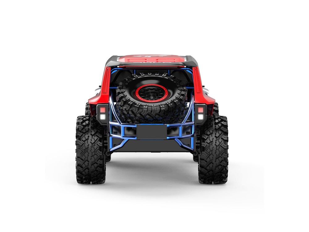 Автомобиль оснащён бесколлекторным двигателем, обеспечивающим высокую скорость, резкий разгон и стабильную работу даже при интенсивных нагрузках. Полный привод 4WD и независимая подвеска позволяют уверенно преодолевать песок, гравий, траву и неровные поверхности. Металлические элементы трансмиссии повышают надёжность и срок службы модели.