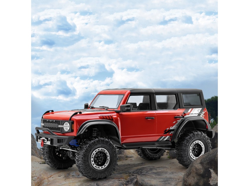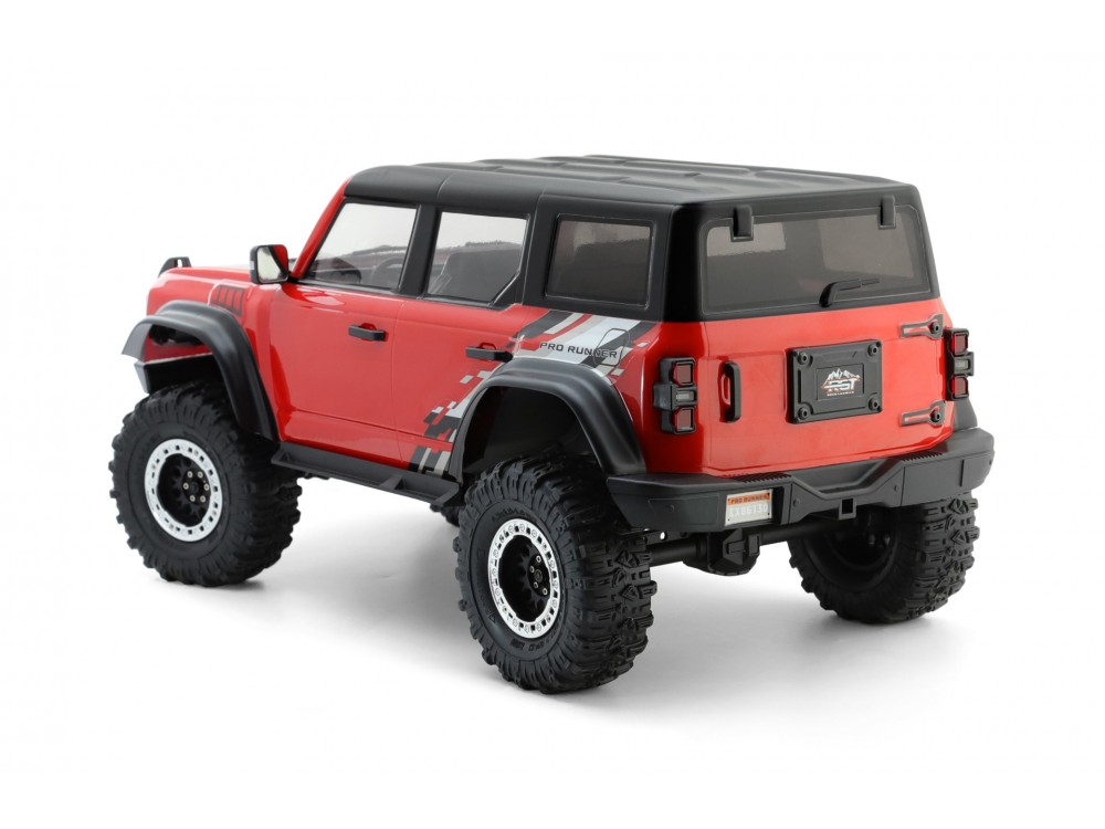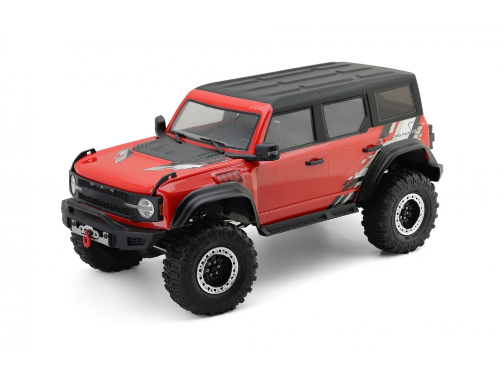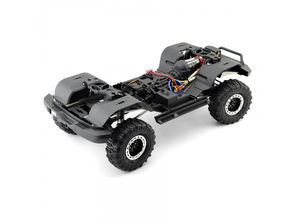 Модель имеет портальные мосты, двухскоростную коробку передач, 4WD, функцию блокировки задней оси и свободно переключаемый передний привод, режим разных скоростей между передним и задним приводом для восхождения. Pro Runner оснащен на заводе лебедкой с функцией разблокировки, задний мост в корпусе для поперечной устойчивости, светодиоды, 6-канальный передатчик, двигателем с очень плавным ходом.