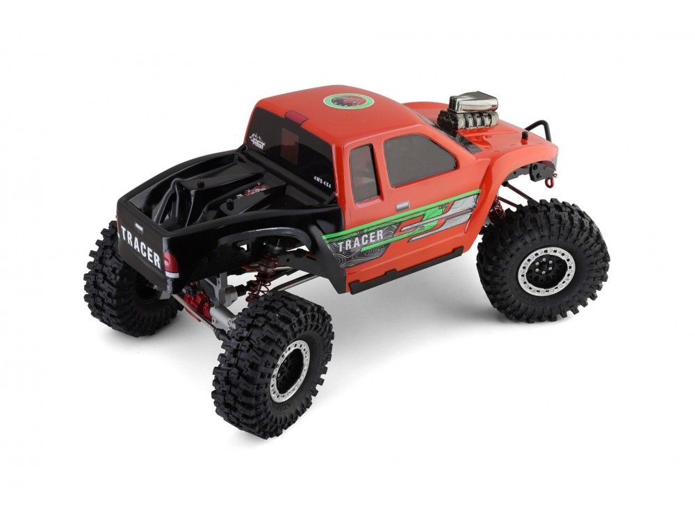 - Tracer оснащен двумя сервами на каждом мосту, которые изменяют угол поворота колес, двигателем с очень плавным ходом, карбоновой рамой.
