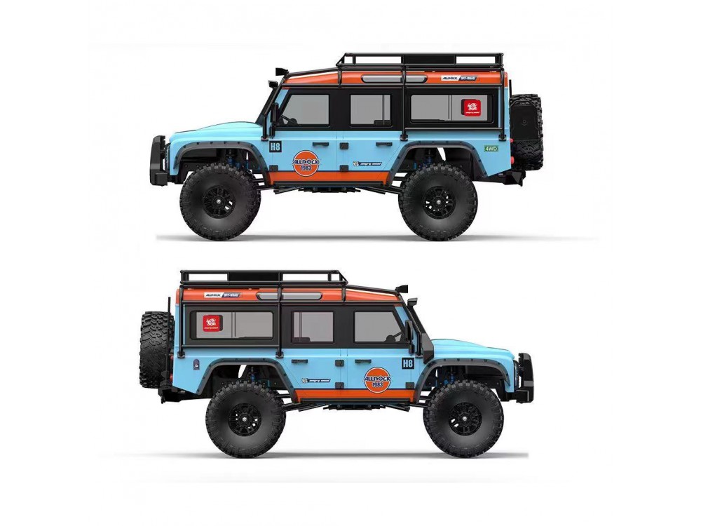 Радиоуправляемый краулер MJX Defender Hyper Go 1/8 Трофи модель - MJX-H8H-BLUE - это трофи модель от компании MJX R/C с пластиковым копийным кузовом Defender, который имеет стильный ярко оранжевый и голубым цвет масштаба 1/8, предназначена для Трофи-Рейдов. Комплектация без АКБ и зарядного устройства позволит вам самостоятельно выбрать будущие характеристики модели. Если вам нравятся прогулки на свежем воздухе, то это модель предназначена для вас. Вы сможете с лёгкостью преодолевать бездорожье, покорять горы и не проходимые болота. Правильная развесовка модели поможет вам в покорении крутых подъёмов и спусков, высокий клиренс и большой ход подвески поможет вам при езде бездорожью. Модель MJX H8H оснащена постоянным полным приводом 4х4, 2х ступенчатой коробкой передач, подключаемыми блокировками дифференциалов. В любой момент вы сможете включить пониженную передачу одним нажатием кнопки на пульте, передачи переключаются сервоприводом напрямую через качалку. Блокировки включаются раздельно кнопками на пульте управления, таким образом можно управлять балансом между управлением и максимальным сцеплением с трассой.