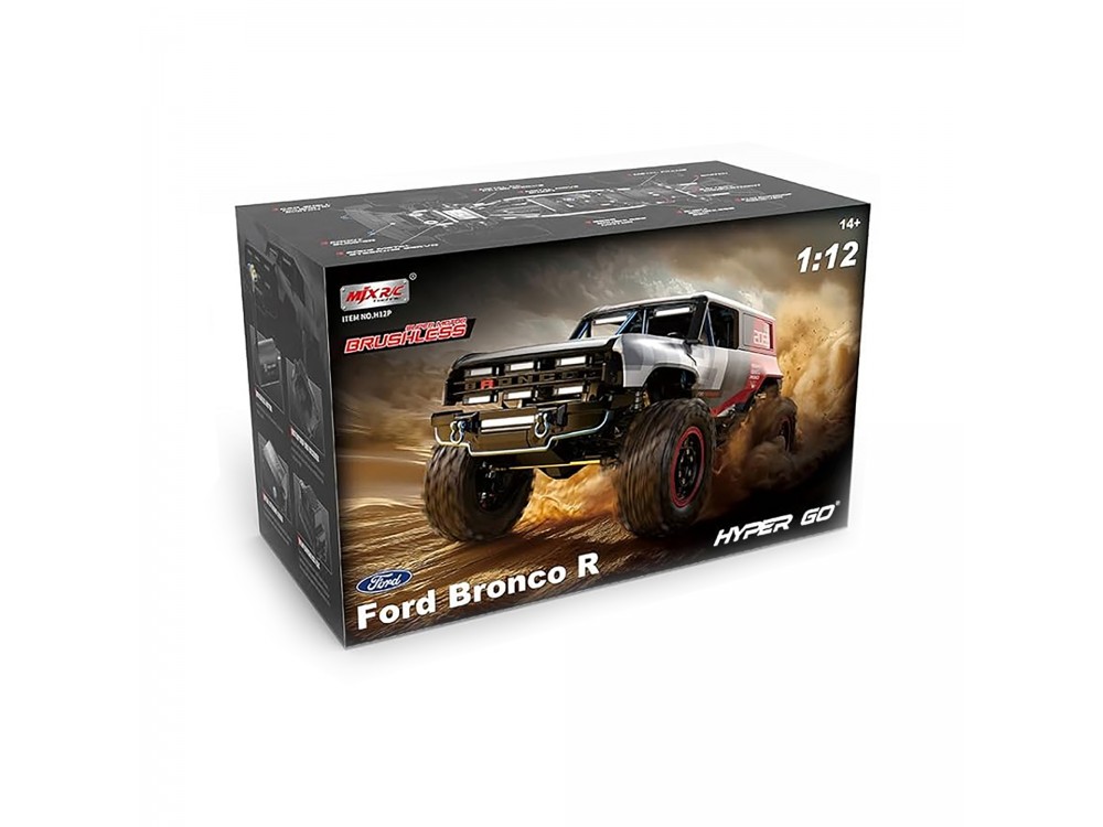 Радиоуправляемый краулер MJX Hyper Go H12P Ford Bronco R Brushless 4WD 1:12 - MJX-H12P - это трофи модель от компании MJX R/C с пластиковым кузовом. Если вам нравятся прогулки на свежем воздухе, то это модель предназначена для вас. Вы сможете с лёгкостью преодолевать бездорожье, покорять горы и не проходимые болота. Правильная развесовка модели поможет вам в покорении крутых подъёмов и спусков, высокий клиренс и большой ход подвески поможет вам при езде бездорожью. Модель MJX оснащена постоянным полным приводом 4х4.