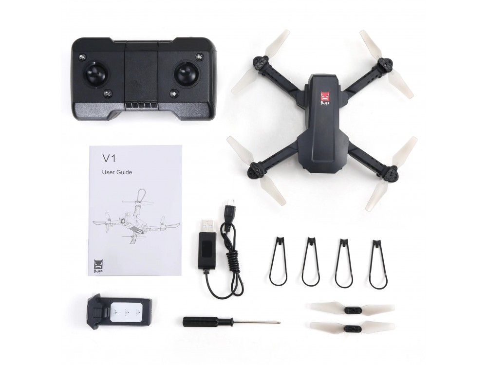 Радиоуправляемый квадрокоптер MJX V1 4K/1080P WiFi FPV 2.4G - MJX-V1 - это квадрокоптер с HD 4K/1080P камерой и очень компактным складным дизайном. Его размер в сложенном виде составляют всего 93.6 х 57.6 х 42.6 мм. Он легко помещается в небольшой руке. Размер в разложенном виде - 170 х 202 х 42.6 мм (вкл защиту винтов). Квадрокоптер выглядит просто, но стильно. Он подходит как для взрослых, так и детей старше 8 лет.