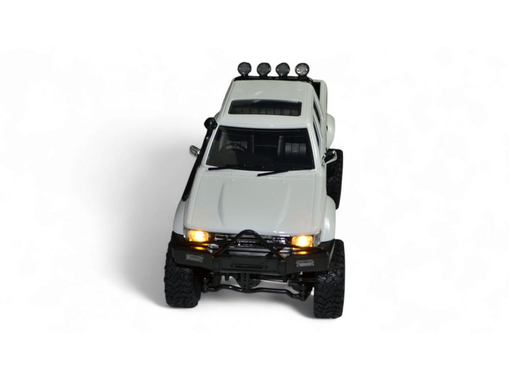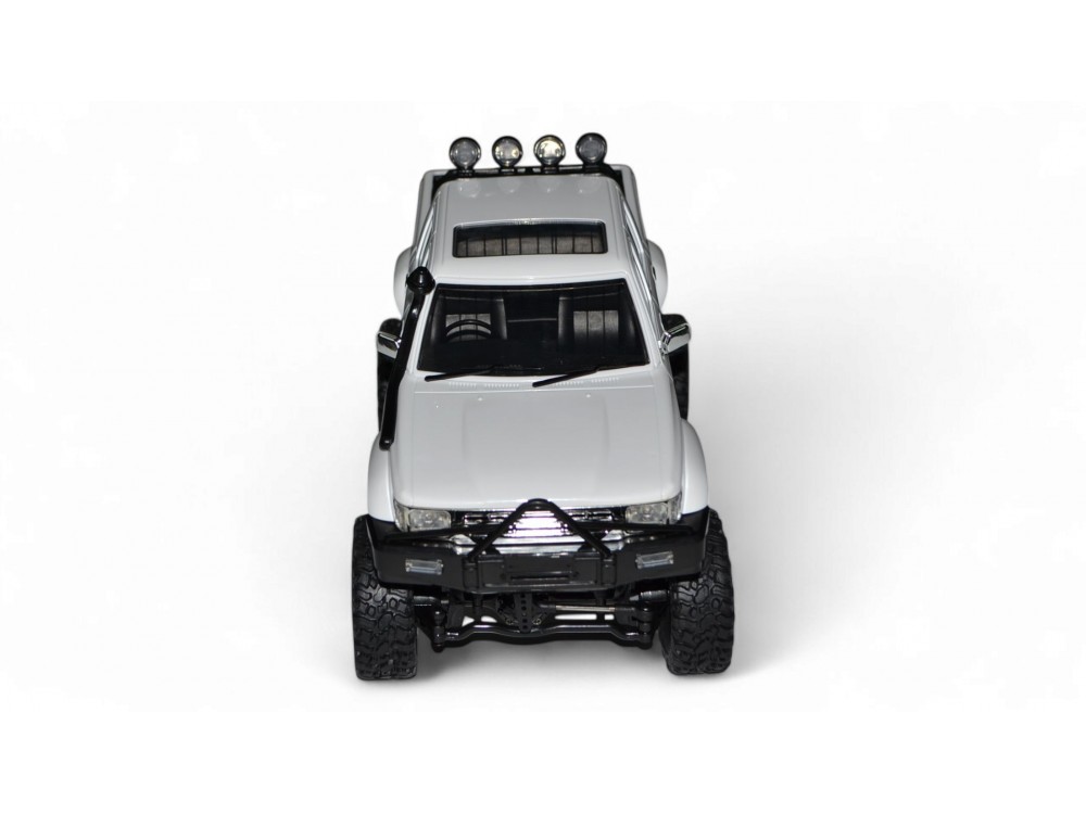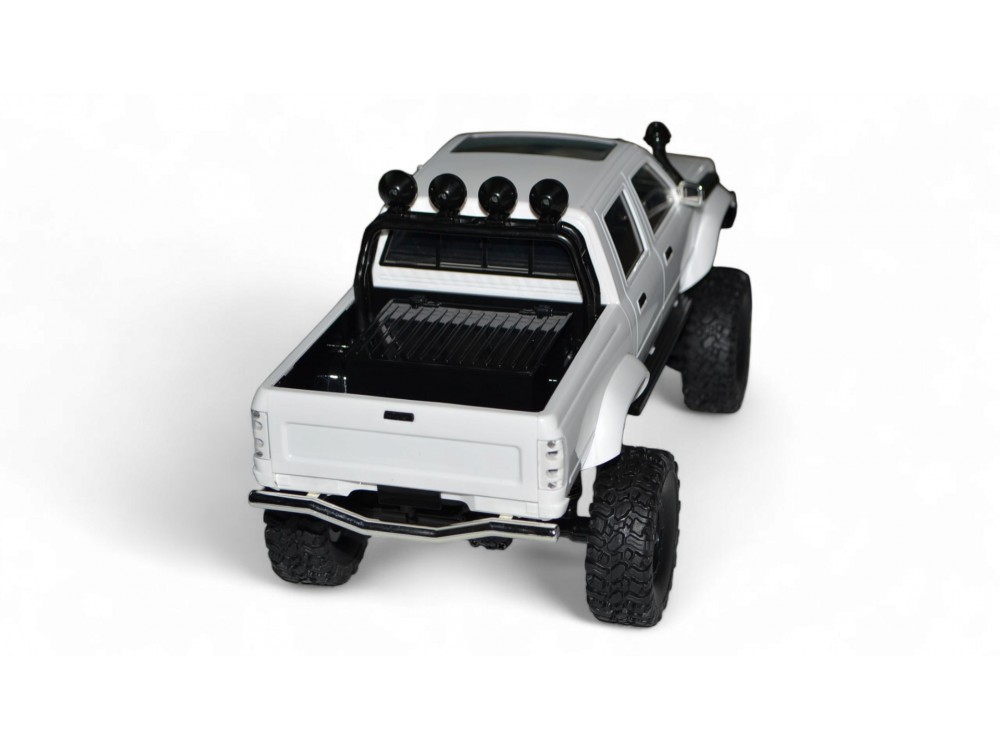 Пикап оснащен полным приводом (4WD), что позволяет ему уверенно преодолевать различные препятствия и бездорожье. Мощный электродвигатель обеспечивает достаточную тягу для подъемов и сложных участков трассы. Прочная конструкция и качественные материалы гарантируют долговечность модели, даже при активном использовании.