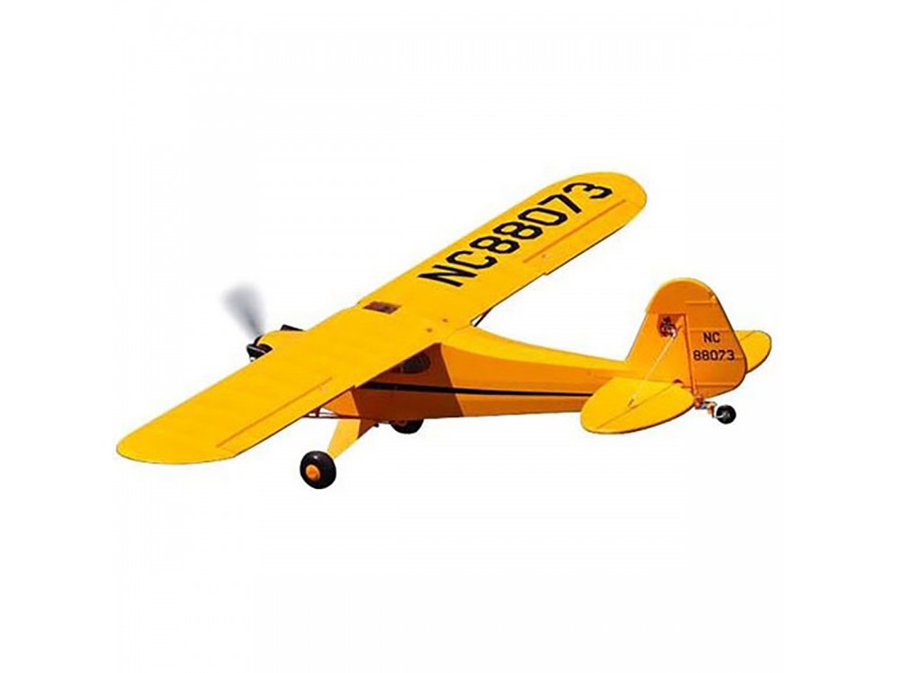 Радиоуправляемый самолет Top RC J3 1400mm Yellow RTF - TOP067C - это радиоуправляемая модель лёгкго двухместнго самолёта Пайпер Каб, который выпускался компанией Piper Aircraft. Под названием Cub скрываются два самолёта: Piper J-2 и Piper J-3. Самолёт представлял собой подкосный высокоплан смешанной силовой конструкции с полотняной обшивкой, традиционным хвостовым оперением и неубирающимся шасси.