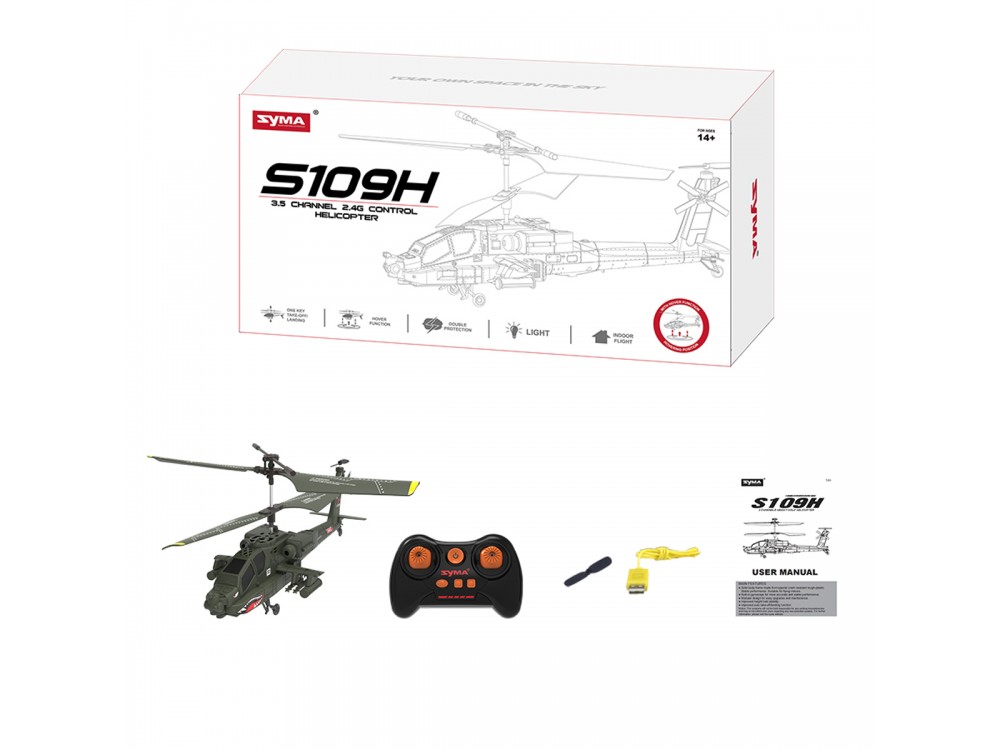 - Комплектация Радиоуправляемый вертолет S109H, аккумулятор, зарядное устройство, 3-х канальный пульт управления инструкция