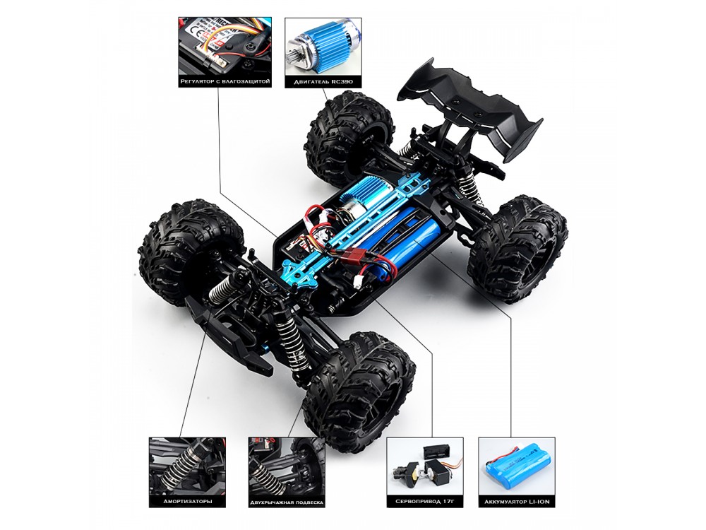 Радиоуправляемый внедорожник Rapidly 4WD 1:16 - SCY-16101-BLUE - это популярная модель от популярного производителя Suchiyu R/C. Автомобиль выполнен в масштабе 1/16 и отличается от конкурентов наличием интеллектуальной аккумуляторной батареи, системой охлаждения двигателя, а также оптимальным соотношением цены и качества деталей.
