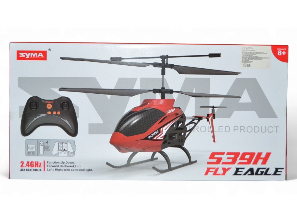 - Комплектация вертолет Syma S39 gyro, 3-канальный пульт управления 2.4GHz, кабель USB для зарядки, отвертка, запасной хвостовой винт, руководство по эксплуатации