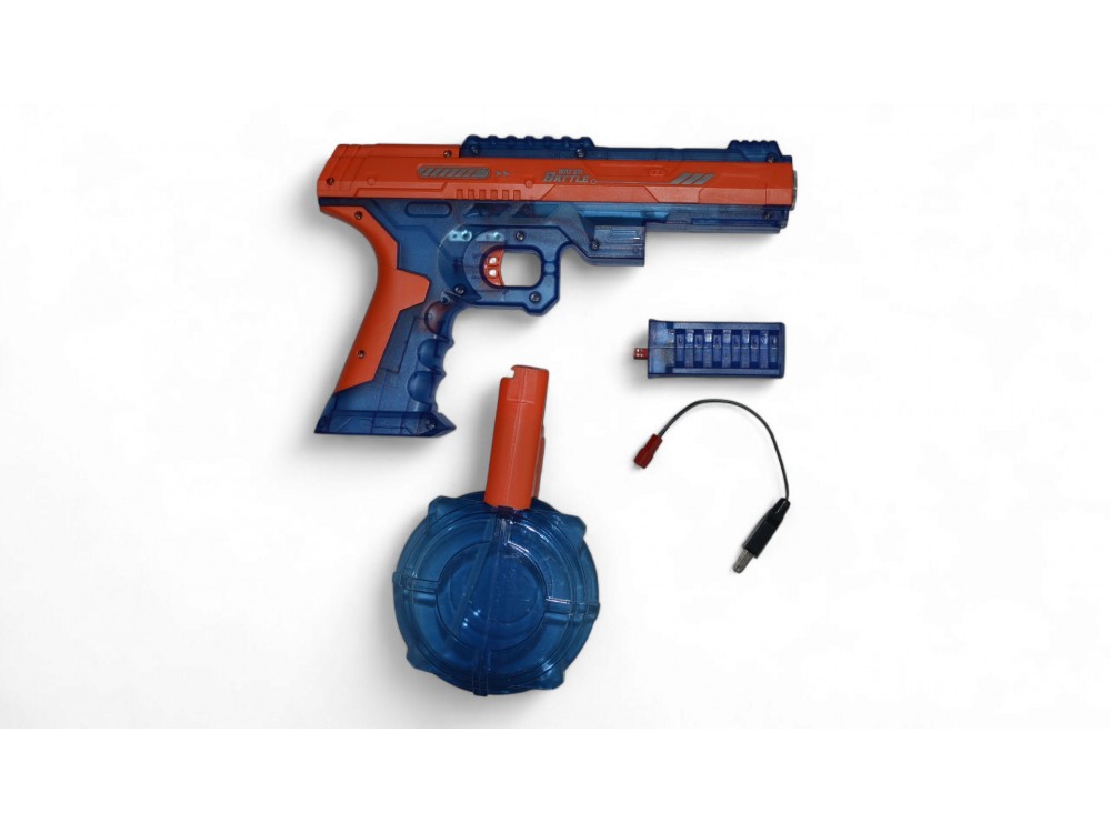 Прочный и безопасный: Изготовленный из высококачественного пластика, пистолет прочен и долговечен, обеспечивая безопасную игру для детей и взрослых. Легкий вес (0,3 кг) и удобная форма позволяют комфортно держать пистолет в руках даже во время активного движения.